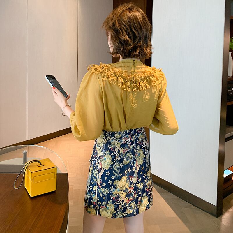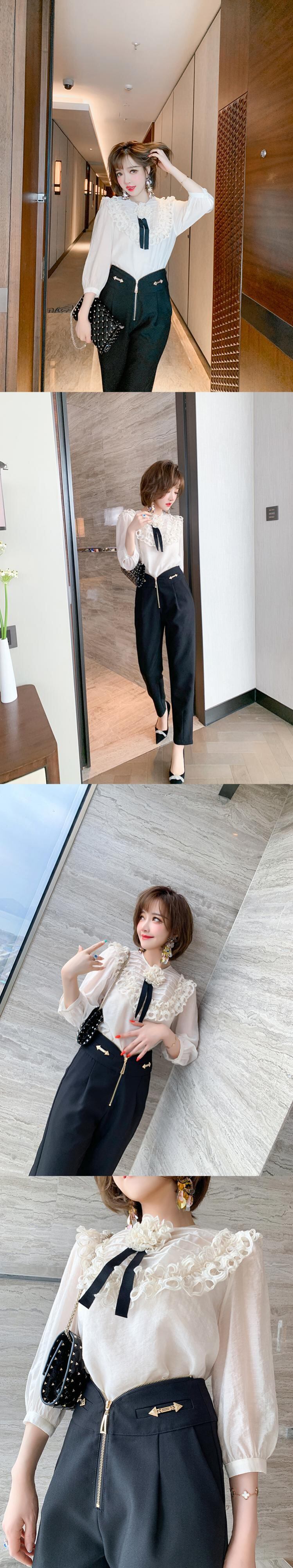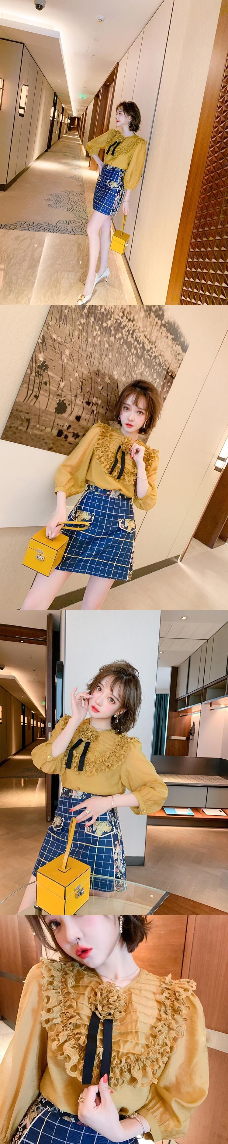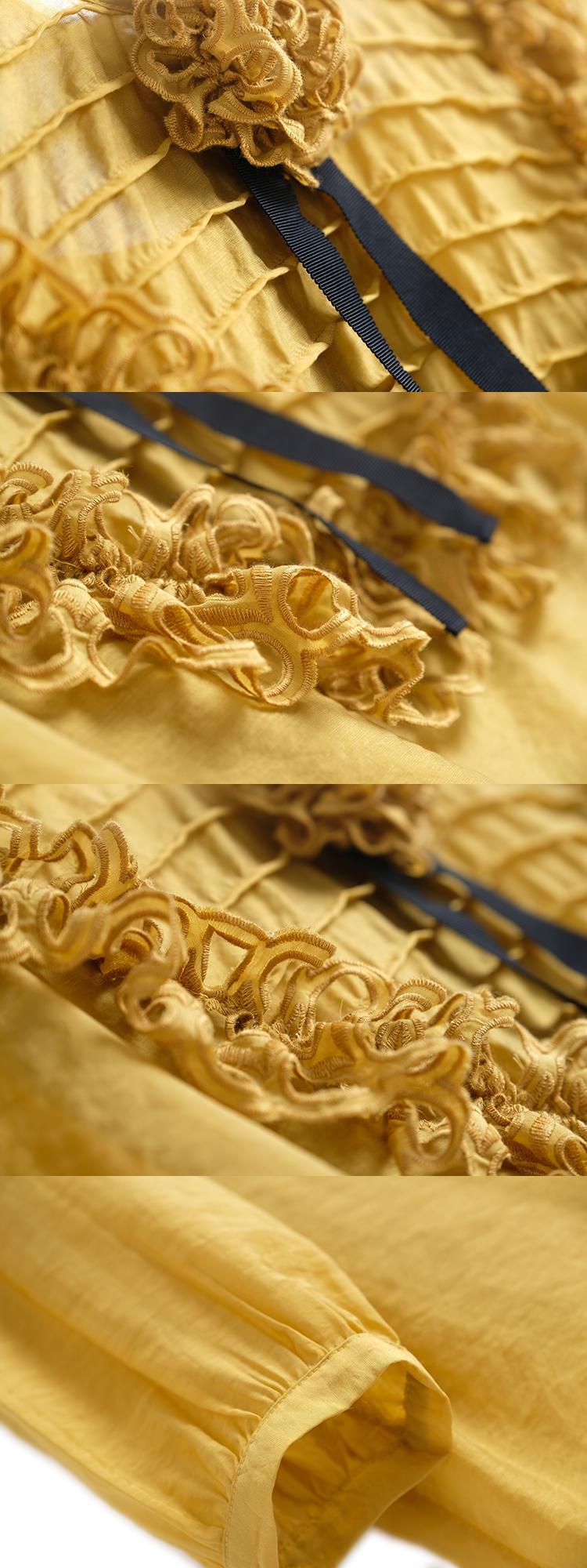 プリーツラウンドネックシャツ スプリング 春物 Oネック フラワーデザイン MIUCO976168853