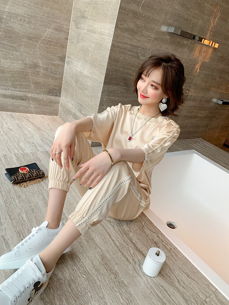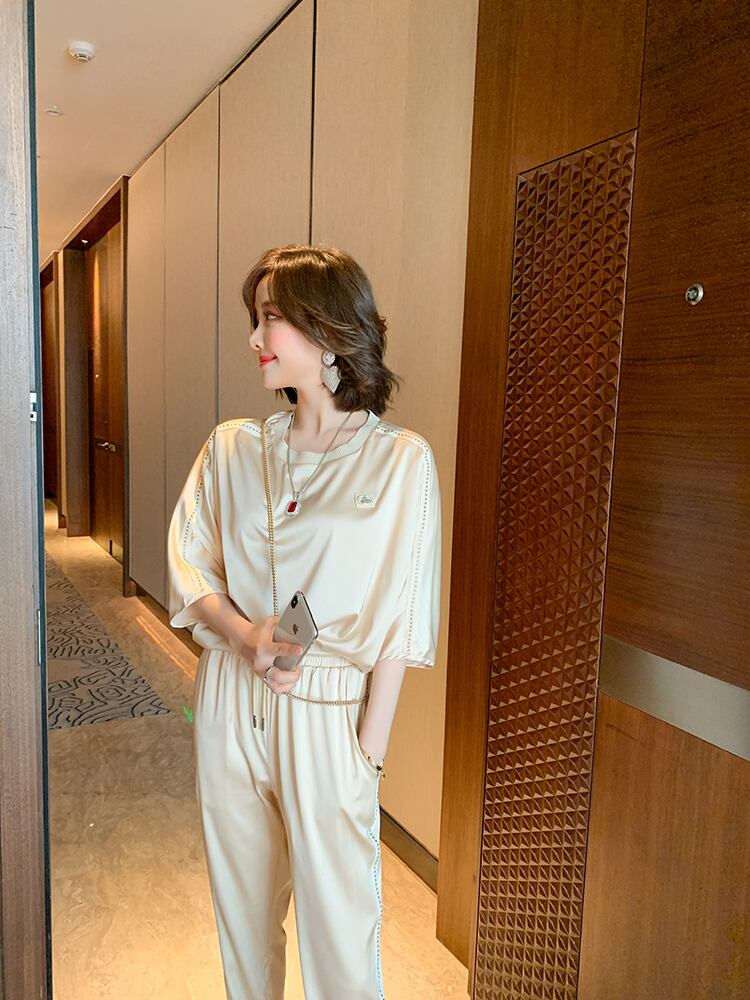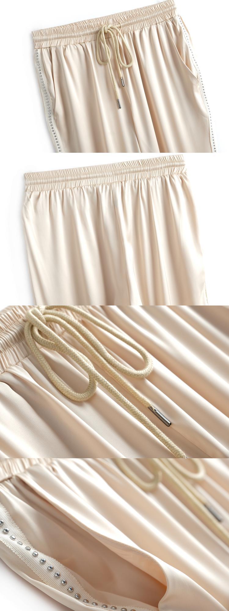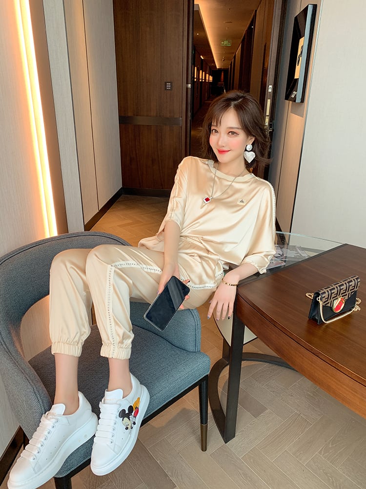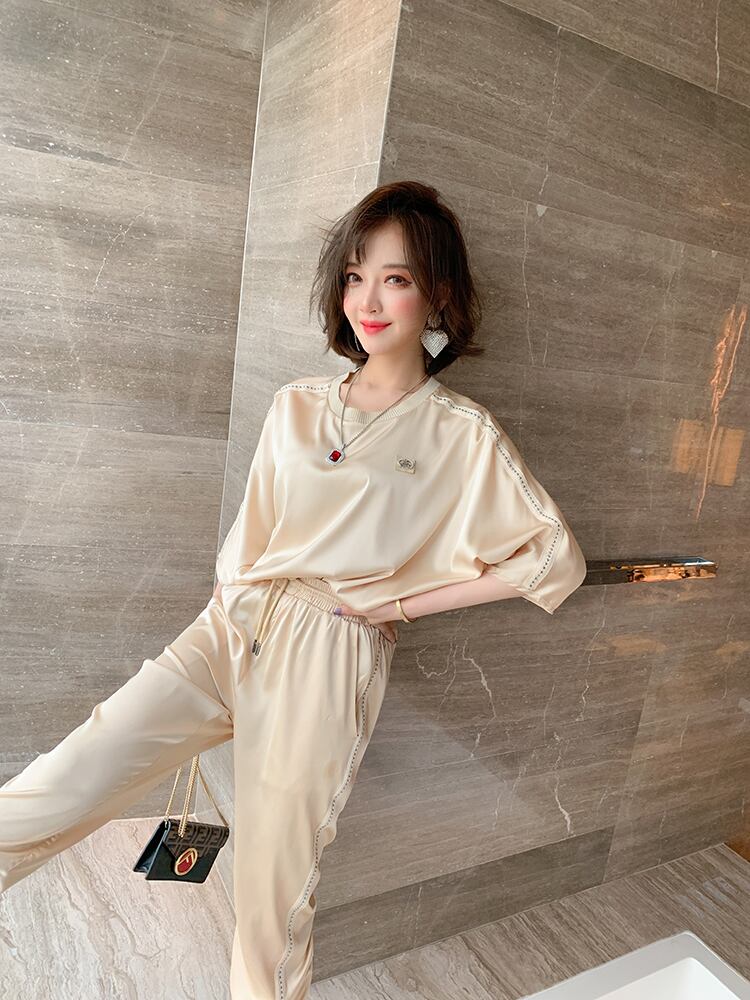 ビーズ ルーズTシャツ ストレッチギャザーパンツ エラスティック 伸縮 スプリング 春物 サマー 夏物 MIUCO63199200692