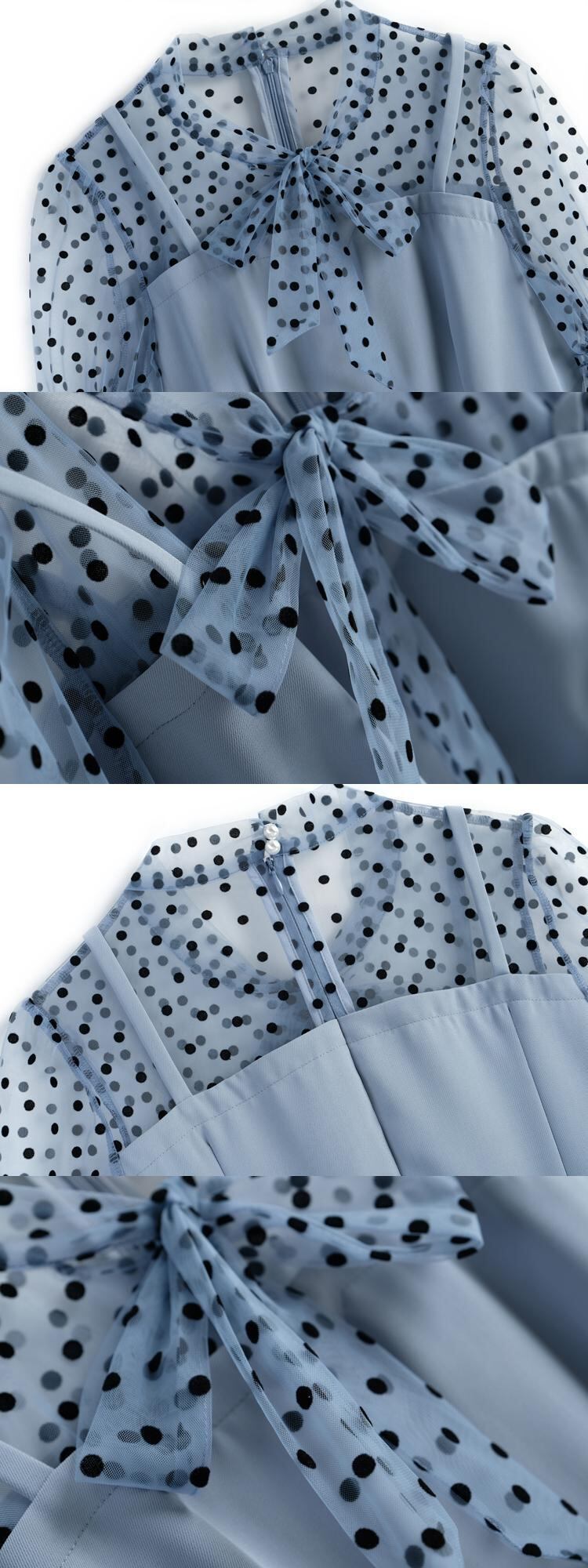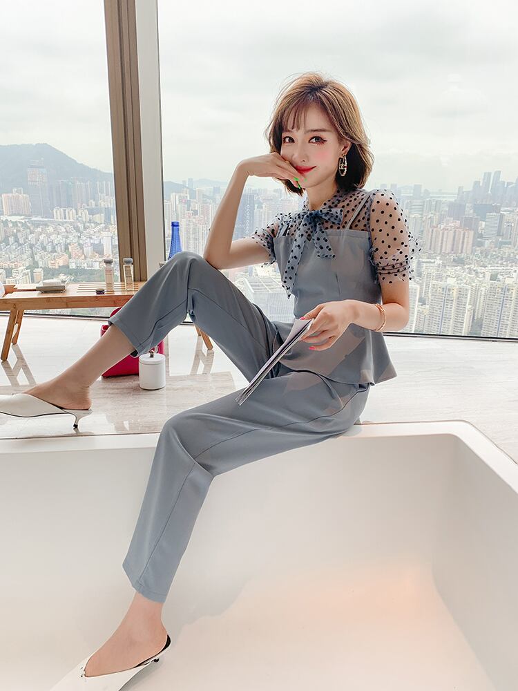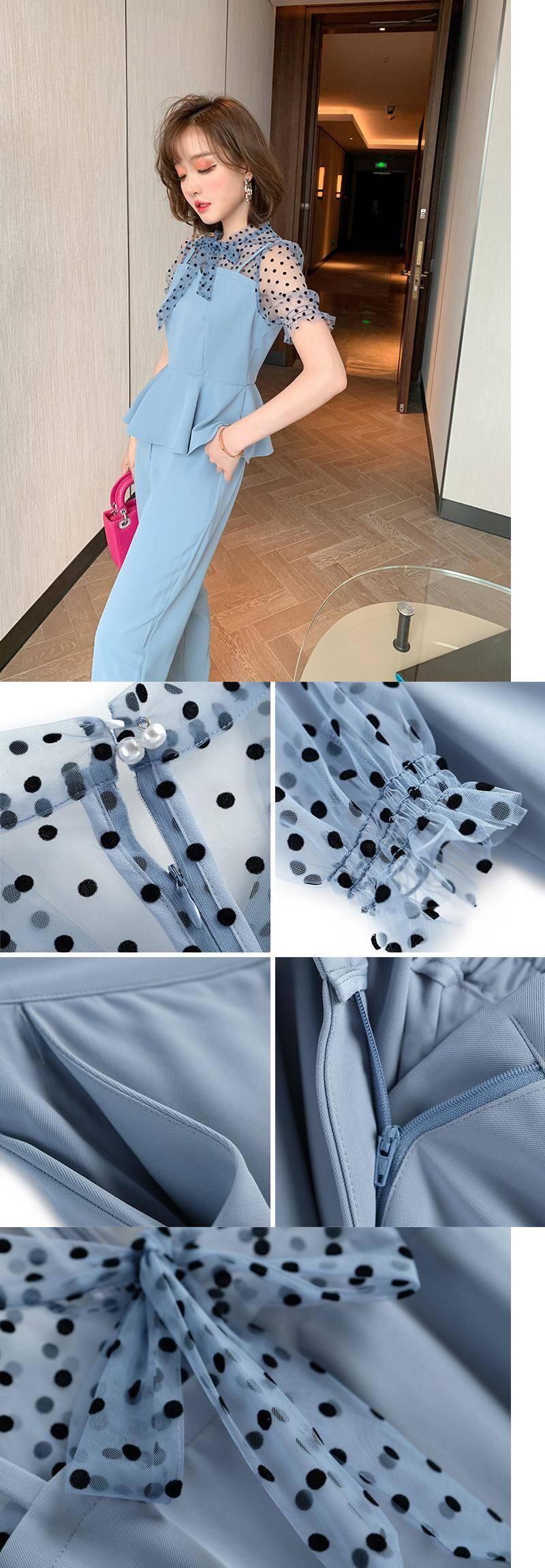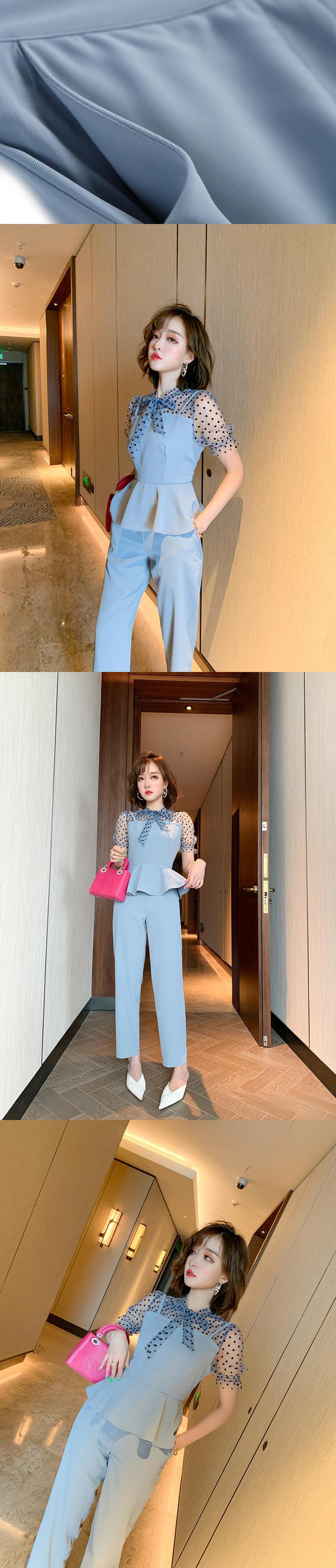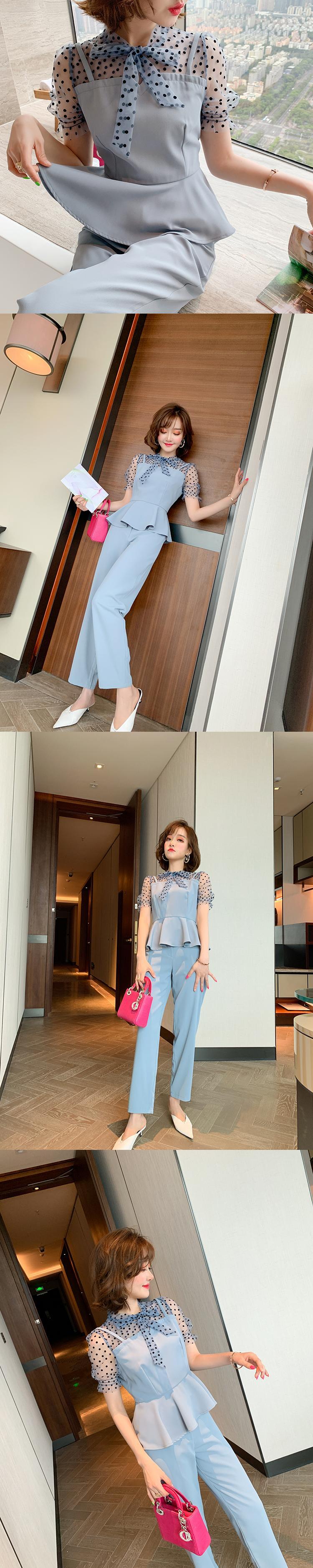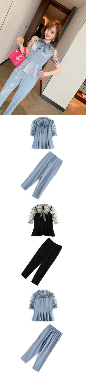 水玉メッシュトップス パンツ スプリング リボン 春物 ステッチ MIUCO45275726692