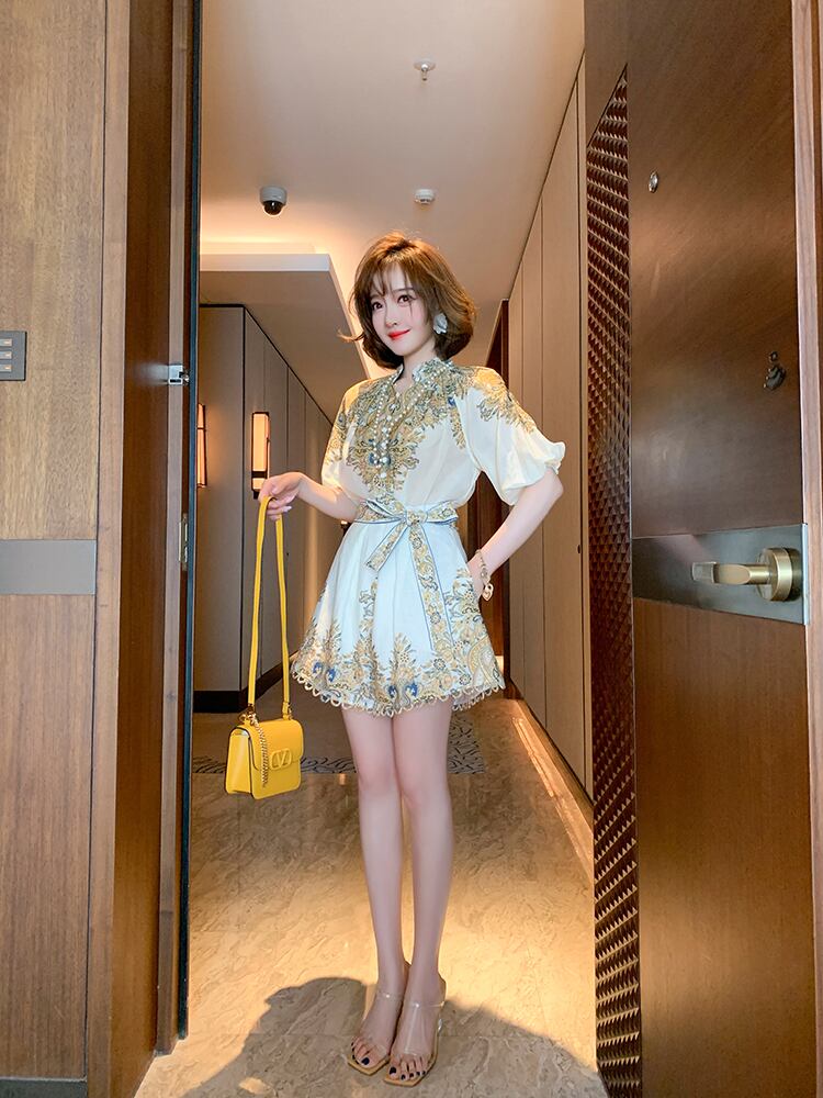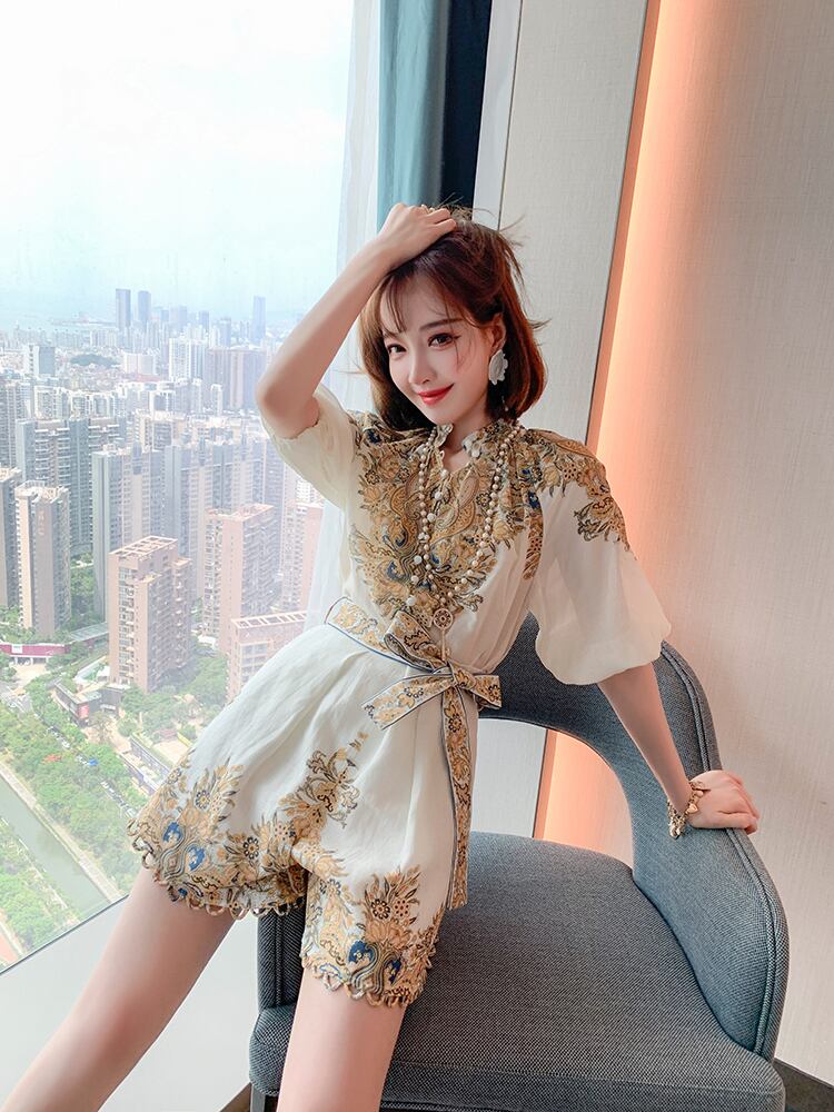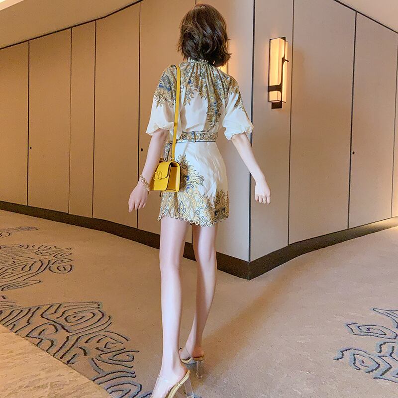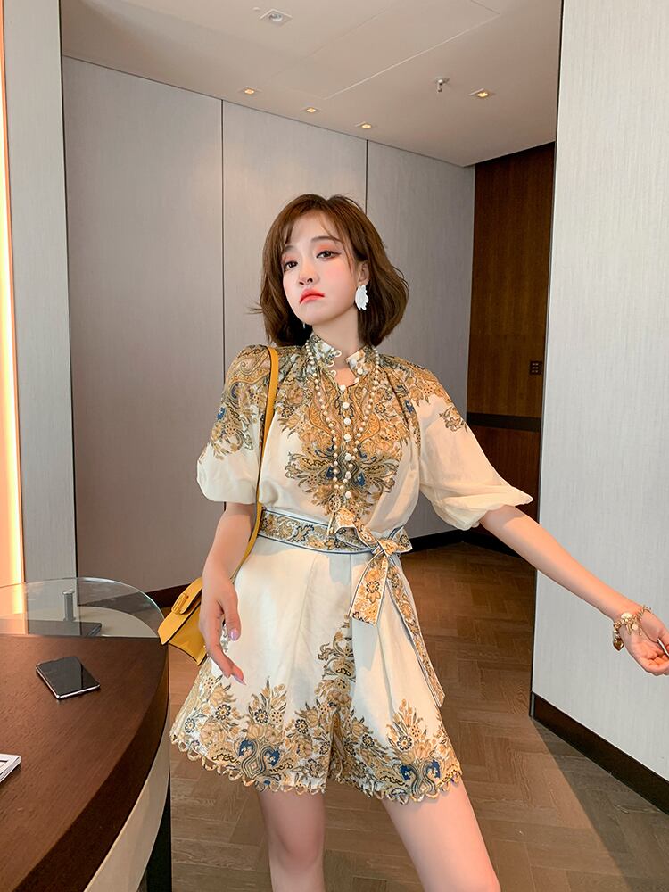 スタンダードプリントカラーシャツ ハイウェストAラインショーツ レトロ ブルマー MIUCO90163309241