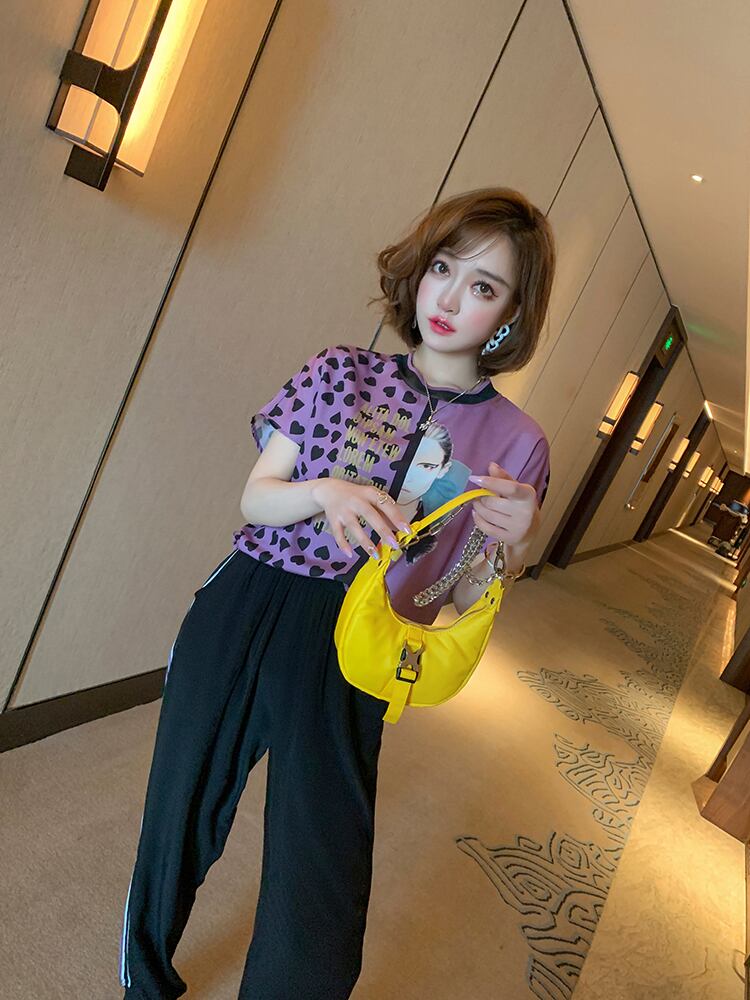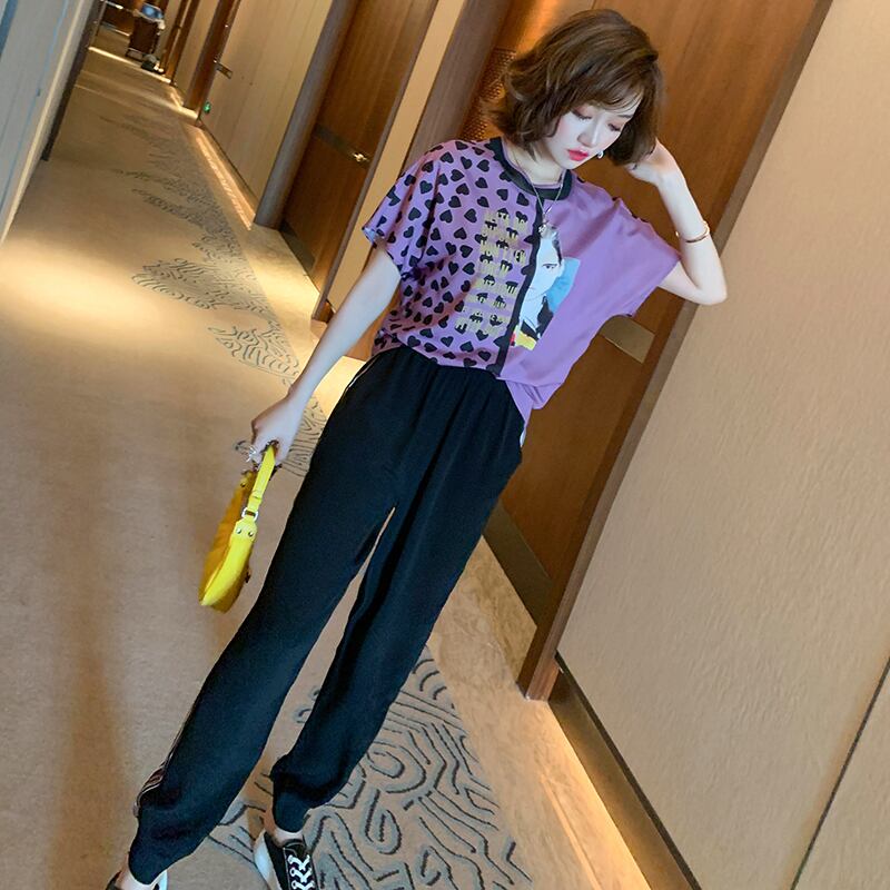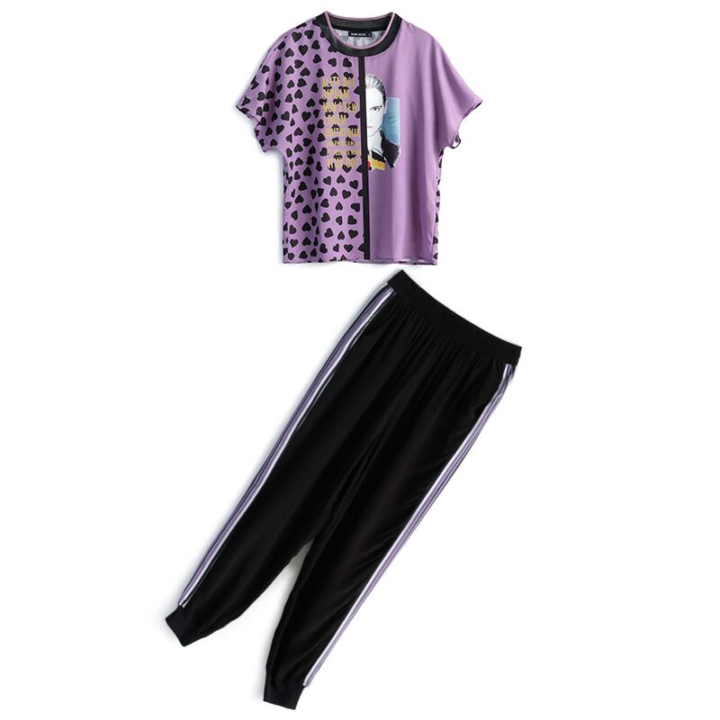 プリントスリーブTシャツ トップス ストライプパンツ セット サマー 夏物 MIUCO46786160923