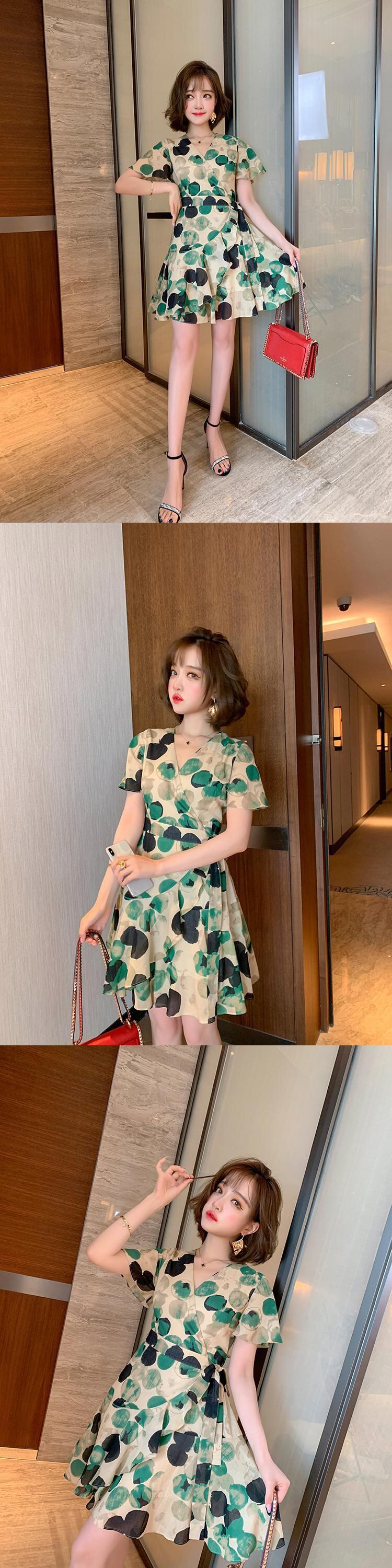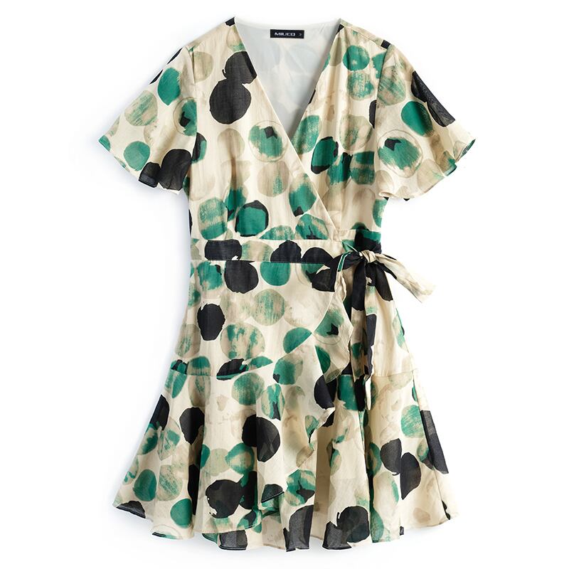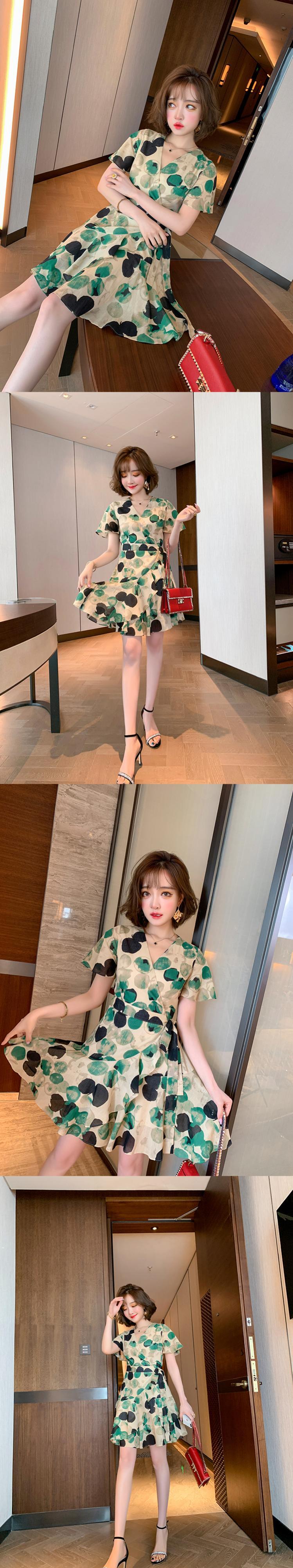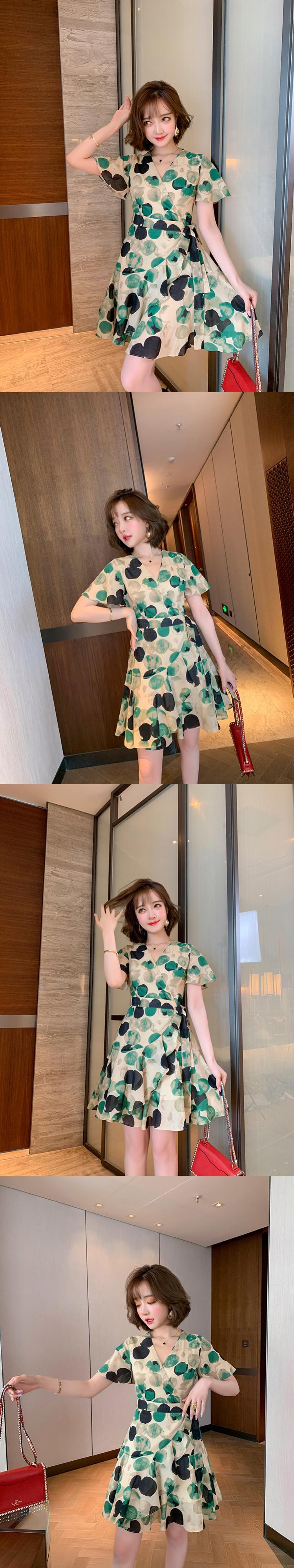プリント水玉Vネックベルト ドレス ハーネス MIUCO40599576137