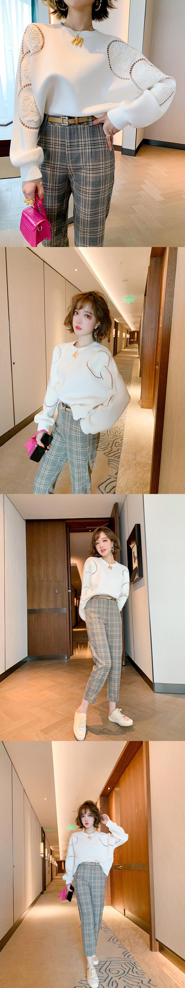 刺繍Flowerデザイン ルーズラウンドネックスウェット トップス Oネック フラワーデザイン MIUCO3128543447