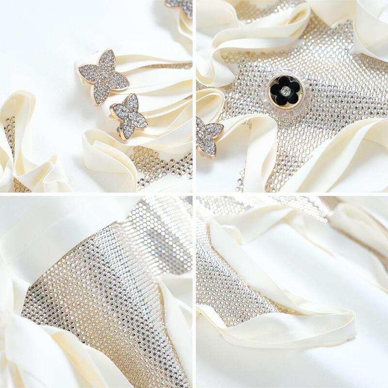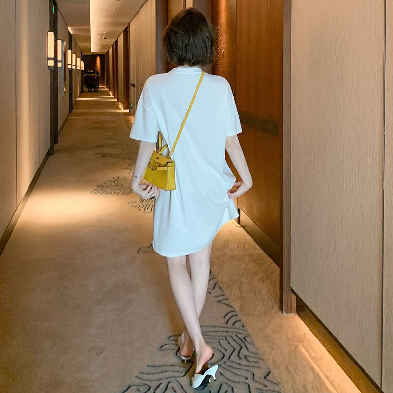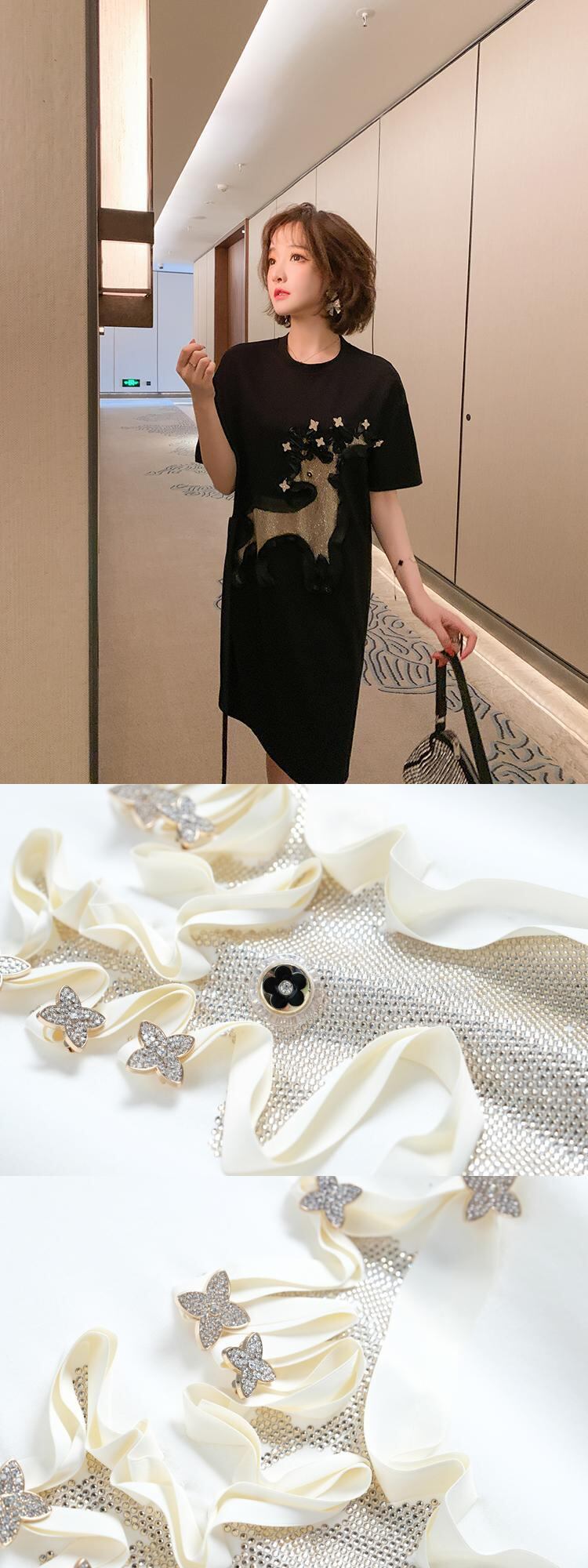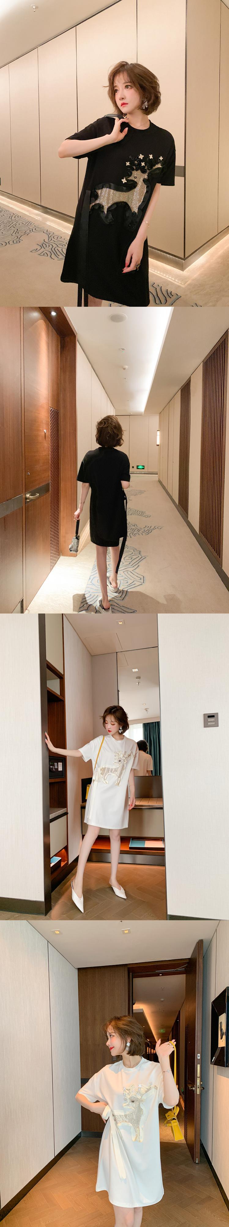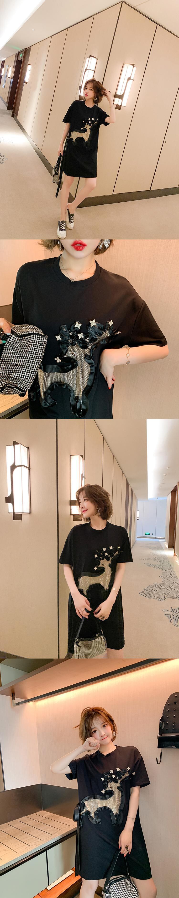 ラウンドネックラインストーンルーズTシャツ ドレス スプリング 春物 Oネック MIUCO80283122705