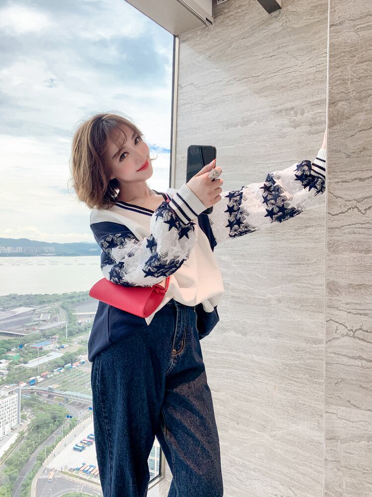 レースルーズセーター レディースオータム レッド 刺繍 秋物 MIUCO14575211579