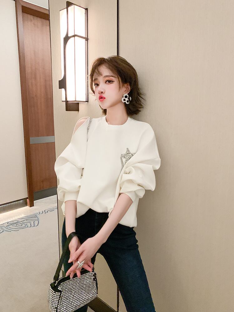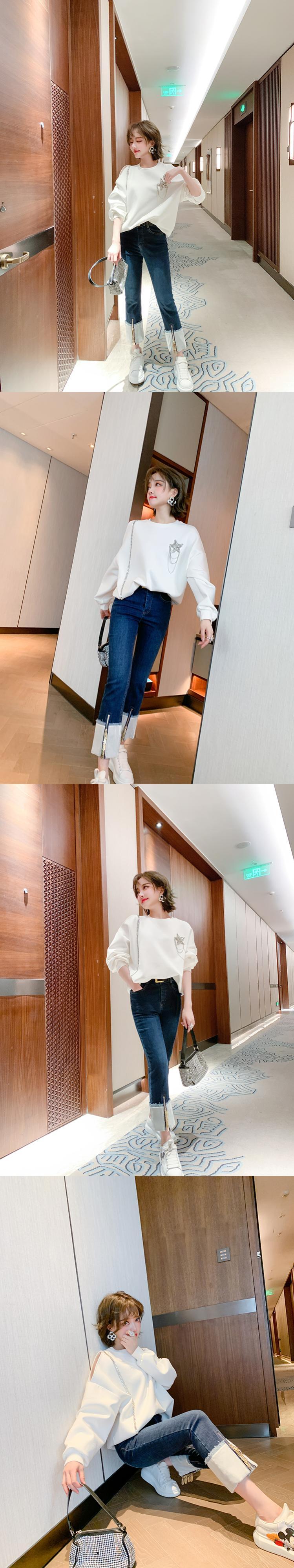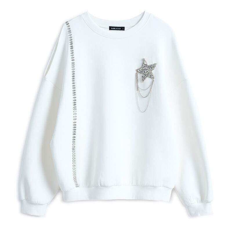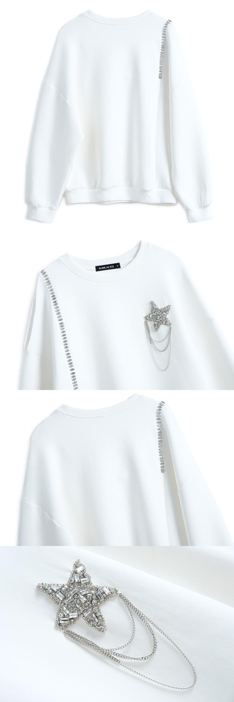 ラウンドネックチェーン ルーズ薄手セーター Oネック MIUCO31665941019