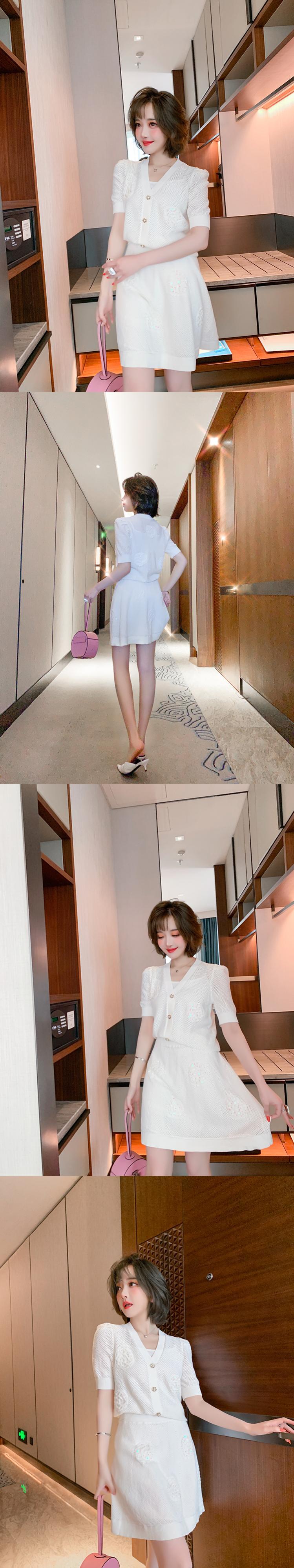 Vネックニットトップス ウェストAラインスカート セット スプリング 春物 MIUCO2662035965