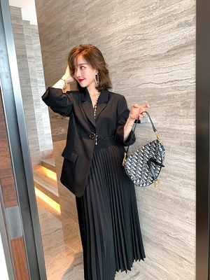 ジャケット ハイウェストウェストプリーツスカート スプリングオータム 春物 秋物 MIUCO67818576262