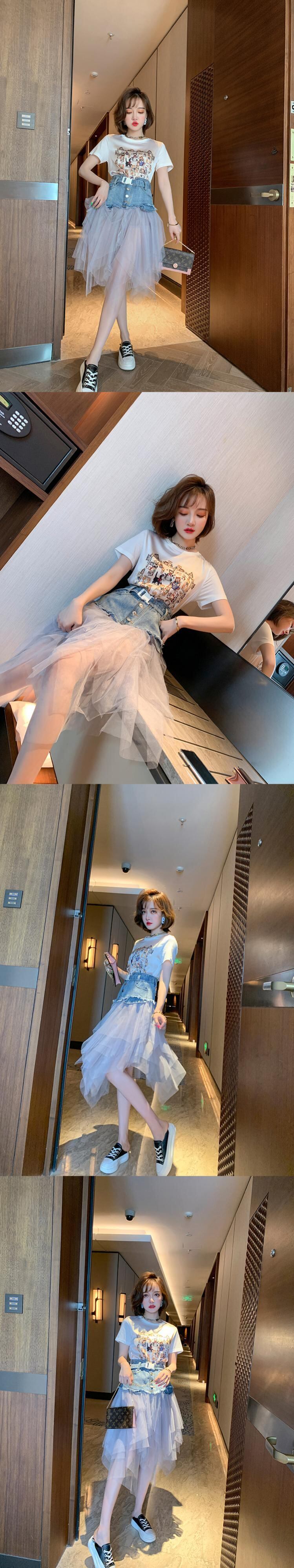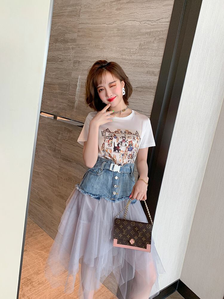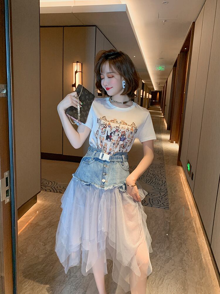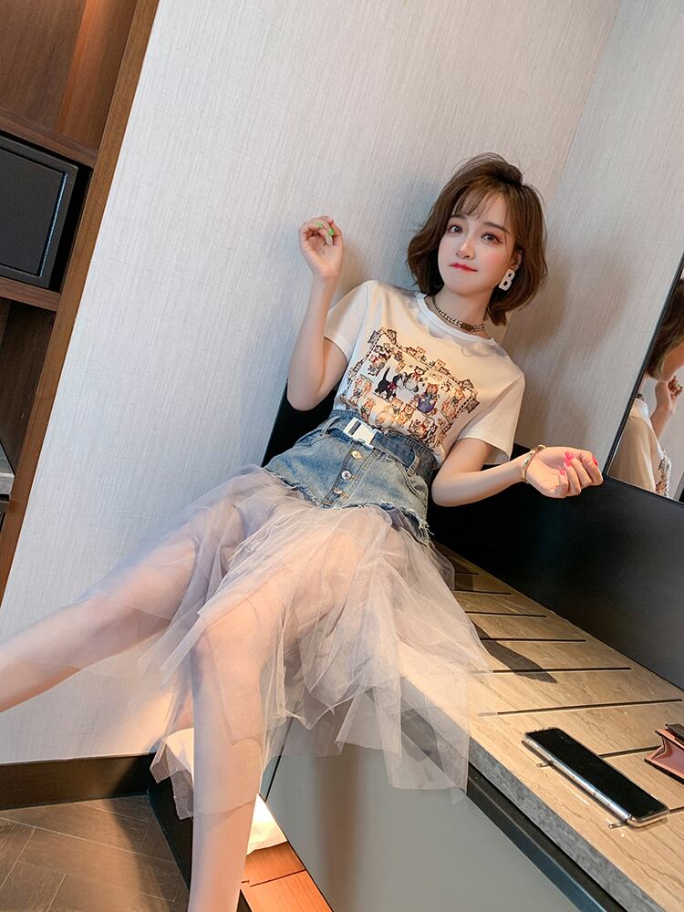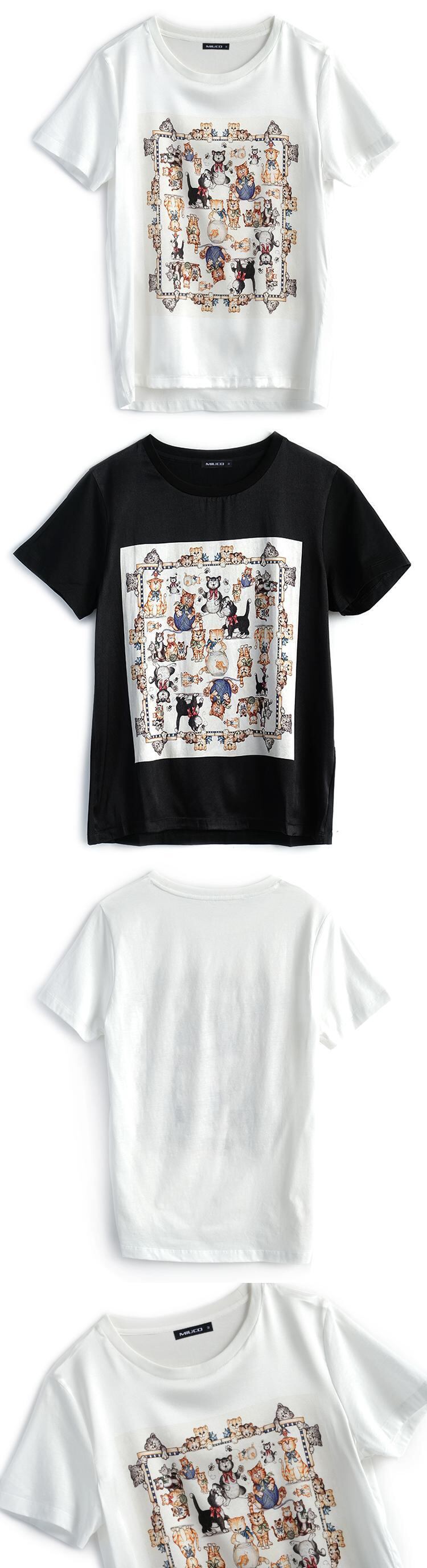 プリントラウンドネックカジュアルTシャツ サマー 夏物 Oネック MIUCO79197370525