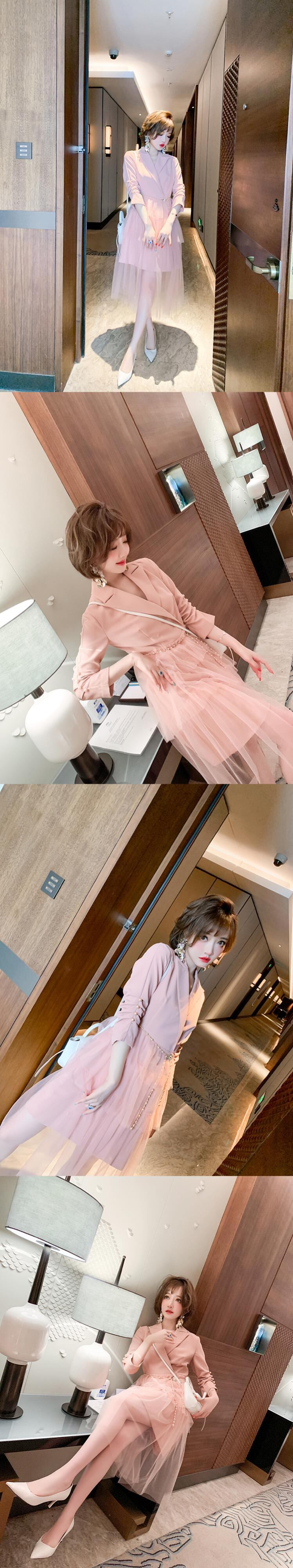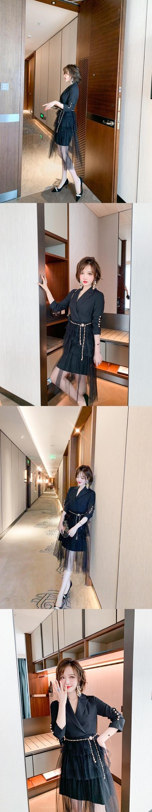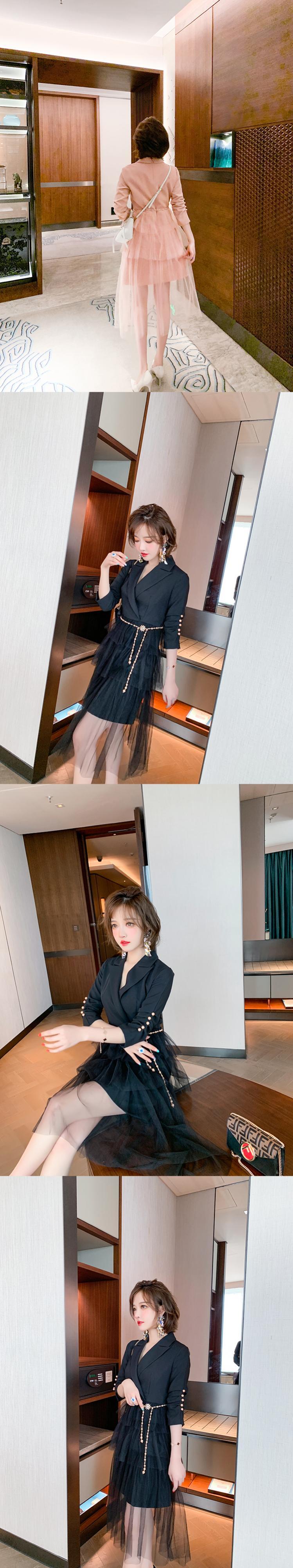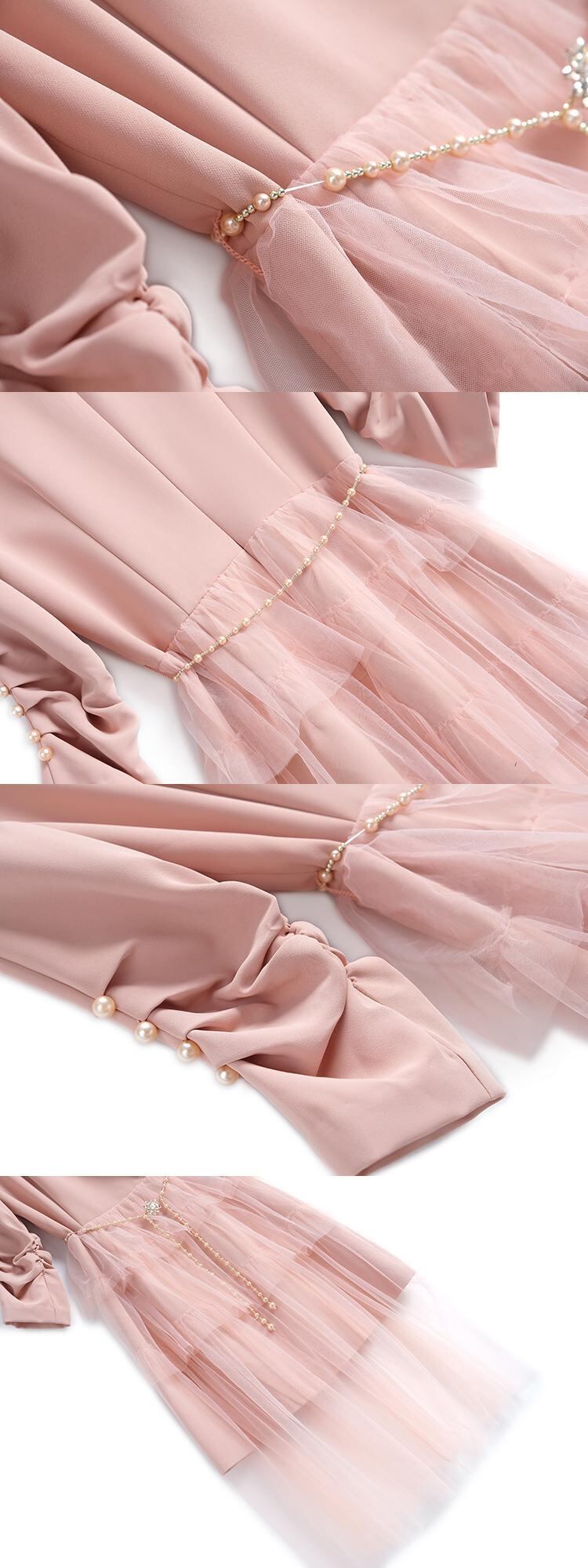 カラーパールバックルメッシュスカート ドレス オータム 秋物 真珠 ステッチ MIUCO42786742512