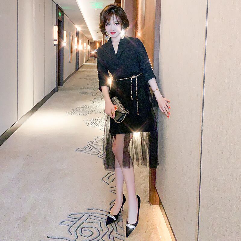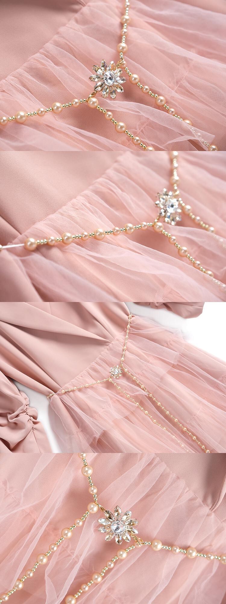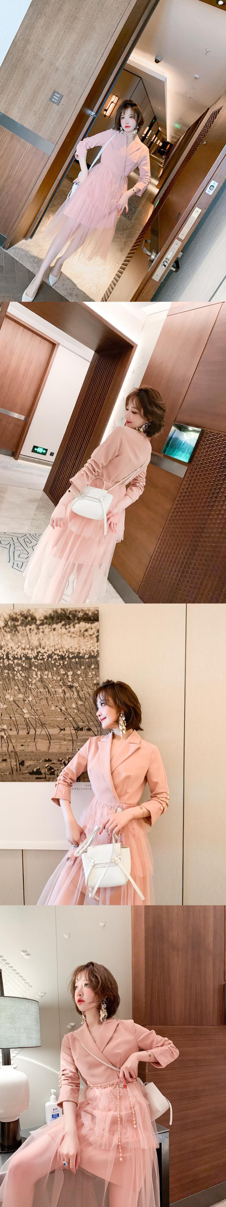 カラーパールバックルメッシュスカート ドレス オータム 秋物 真珠 ステッチ MIUCO42786742512