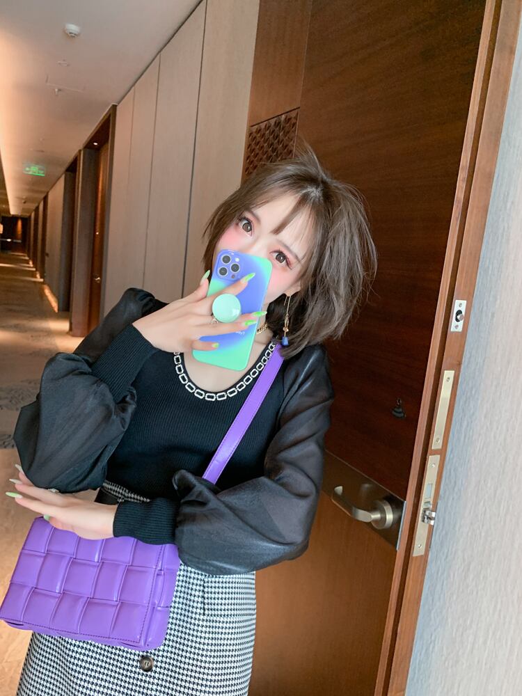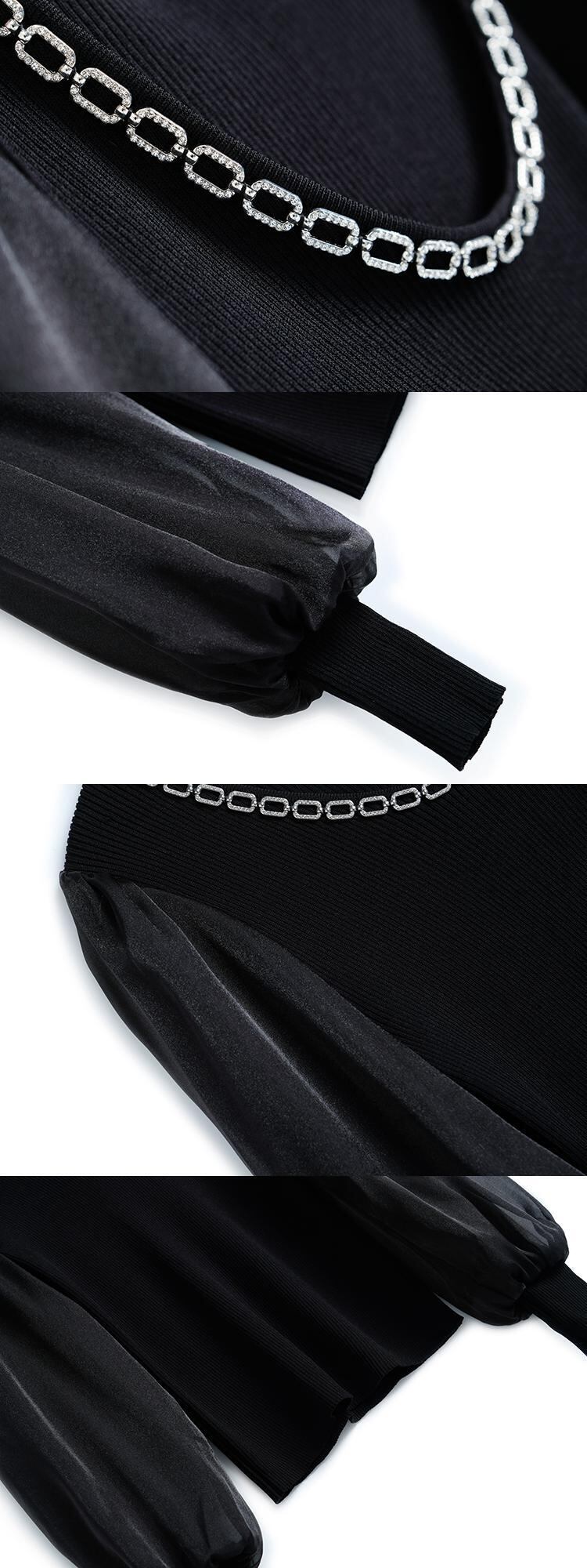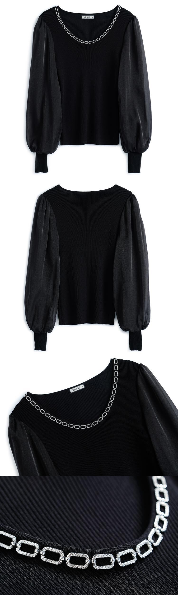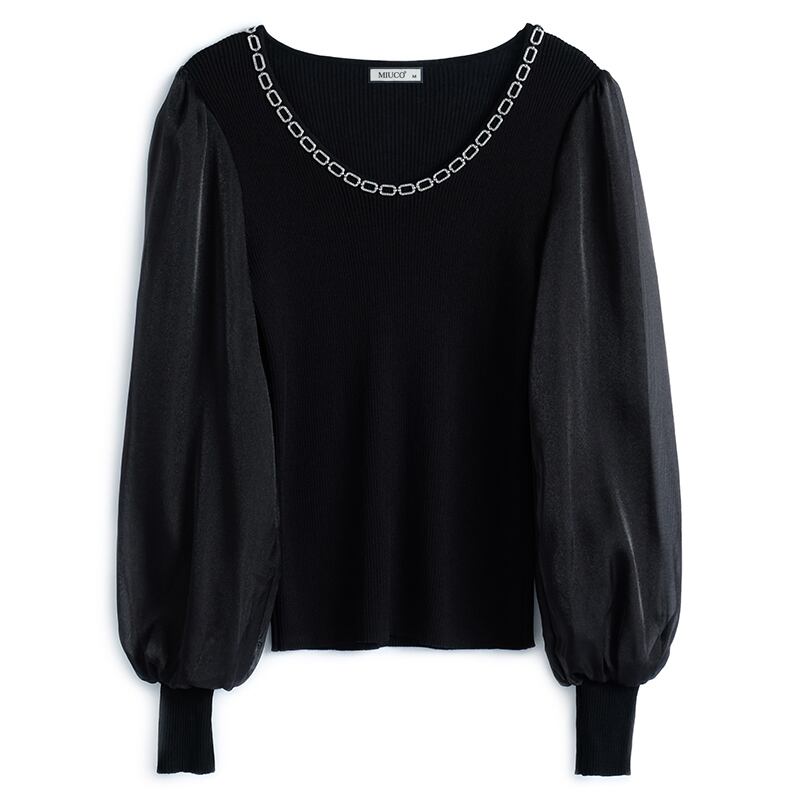 チェーン スリムスリーブニットトップス ランタンスリーブ MIUCO89417772480