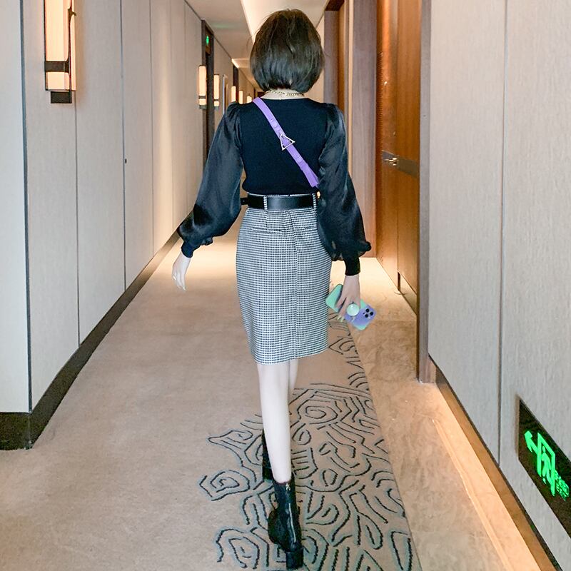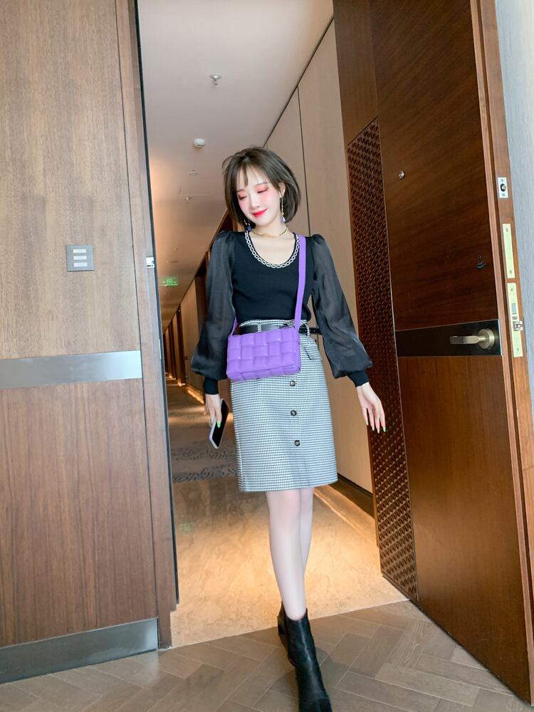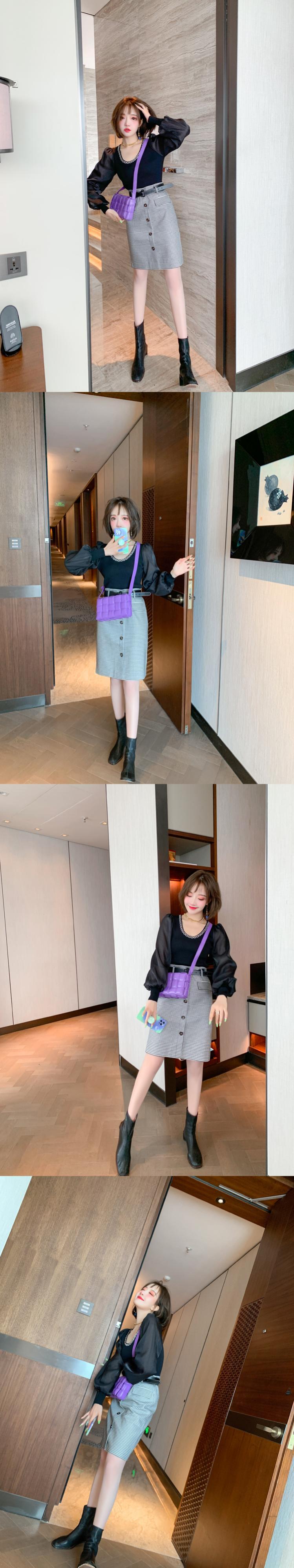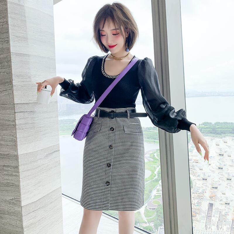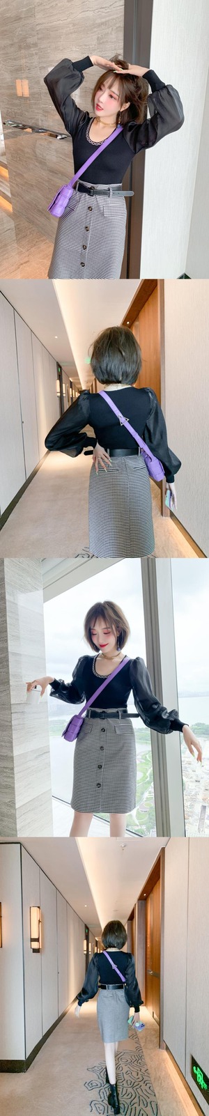 チェーン スリムスリーブニットトップス ランタンスリーブ MIUCO89417772480