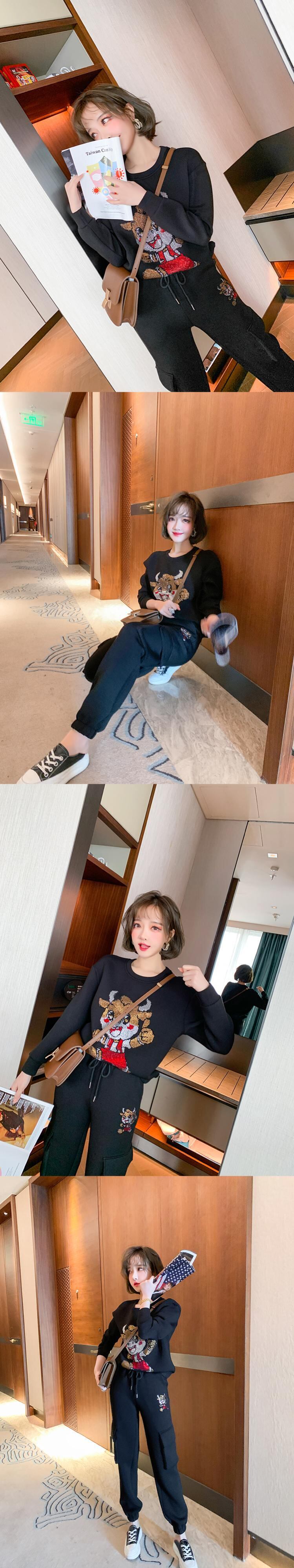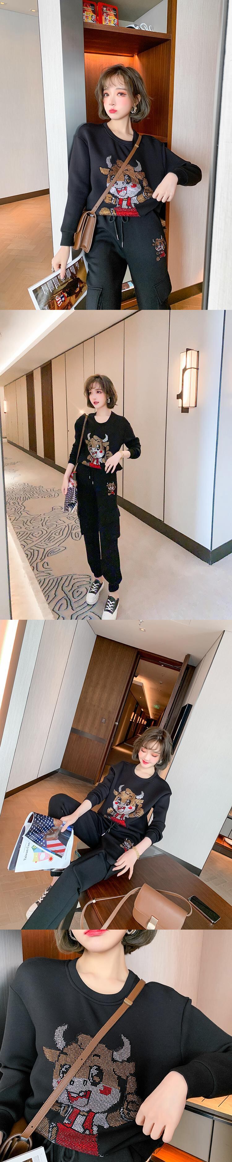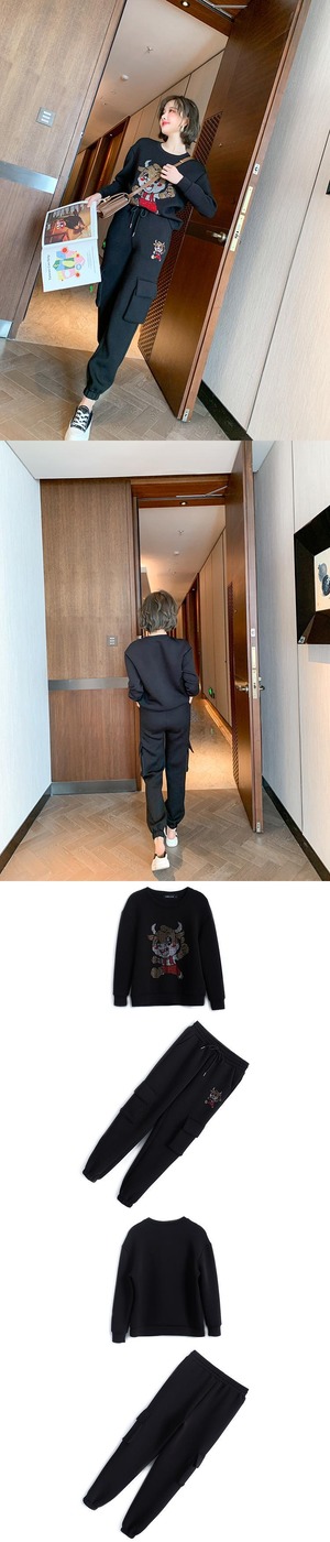 ラインストーンスウェット ポケットウェストパンツ セット レース レースアップ MIUCO77286507593