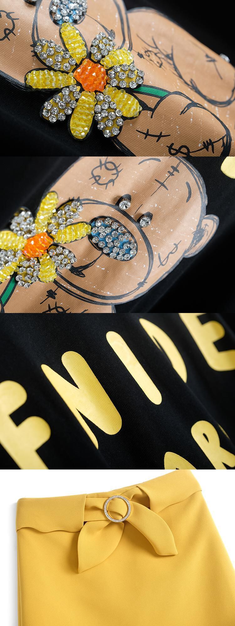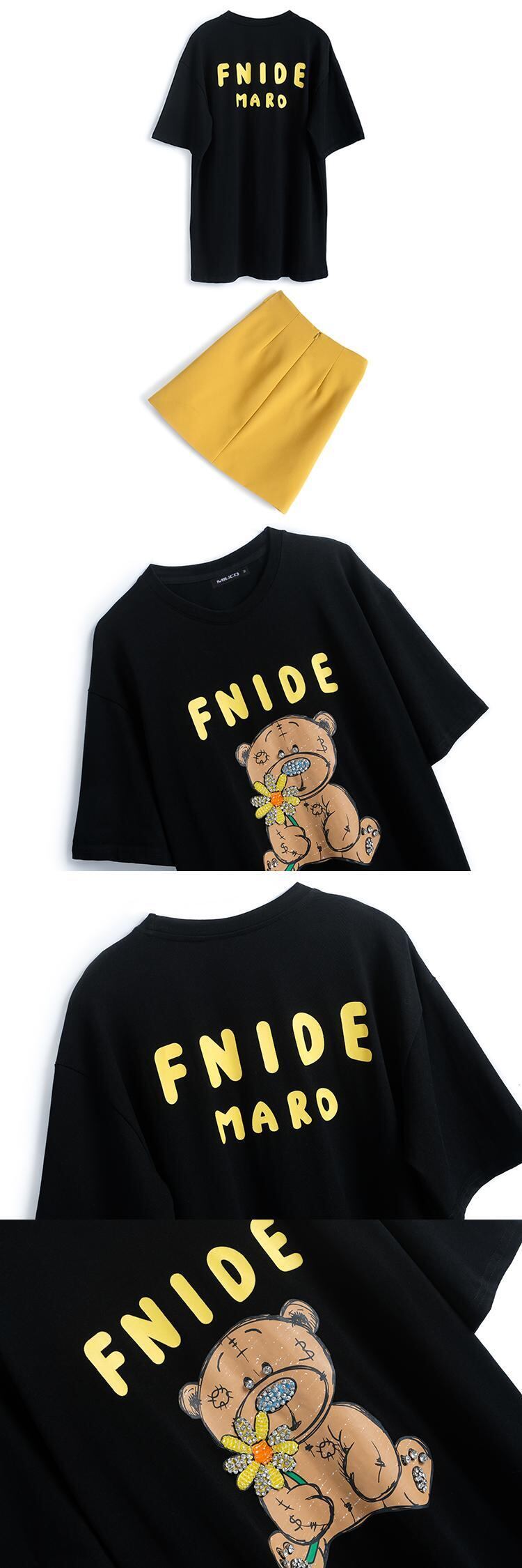 プリント柄Tシャツ ハイウェスト薄手ソリッド Aラインスカート スプリング 春物 ソリッドカラー MIUCO51095501749