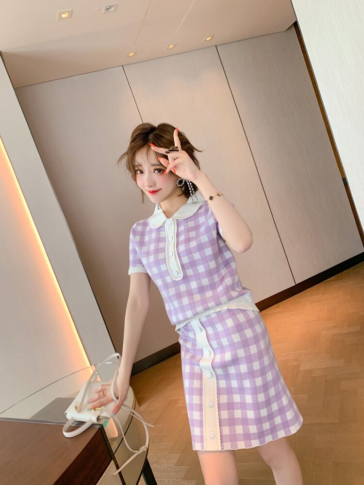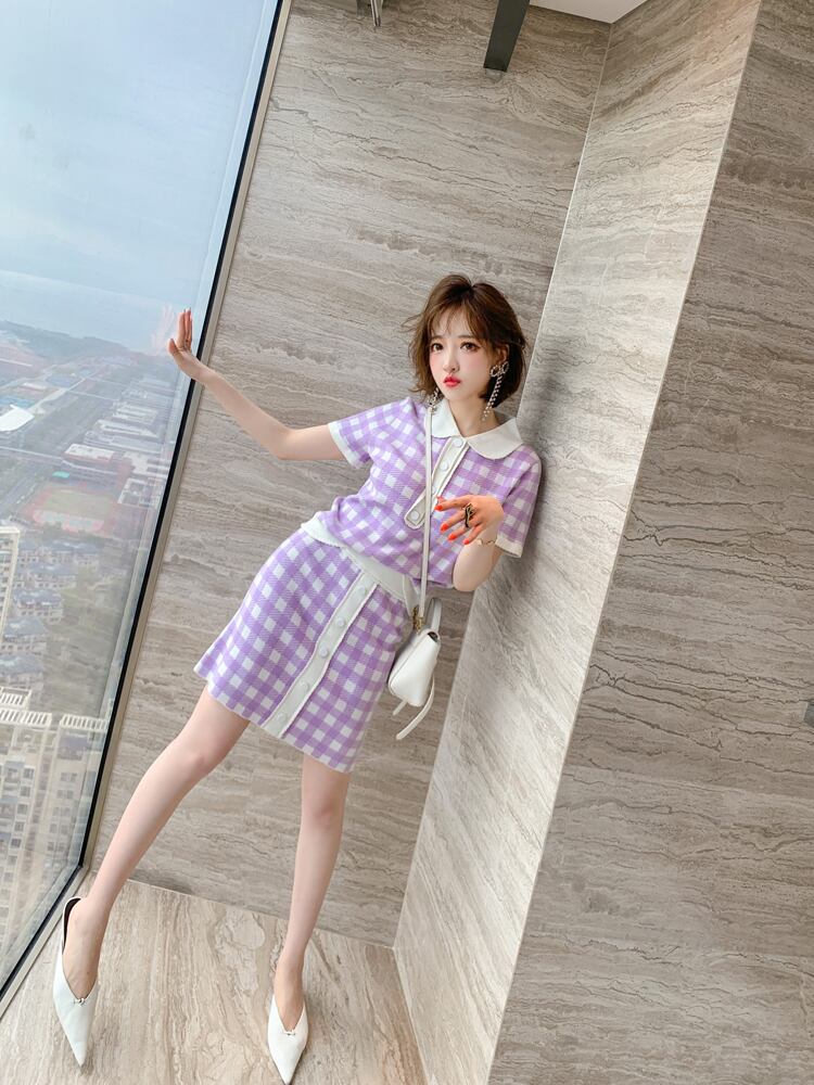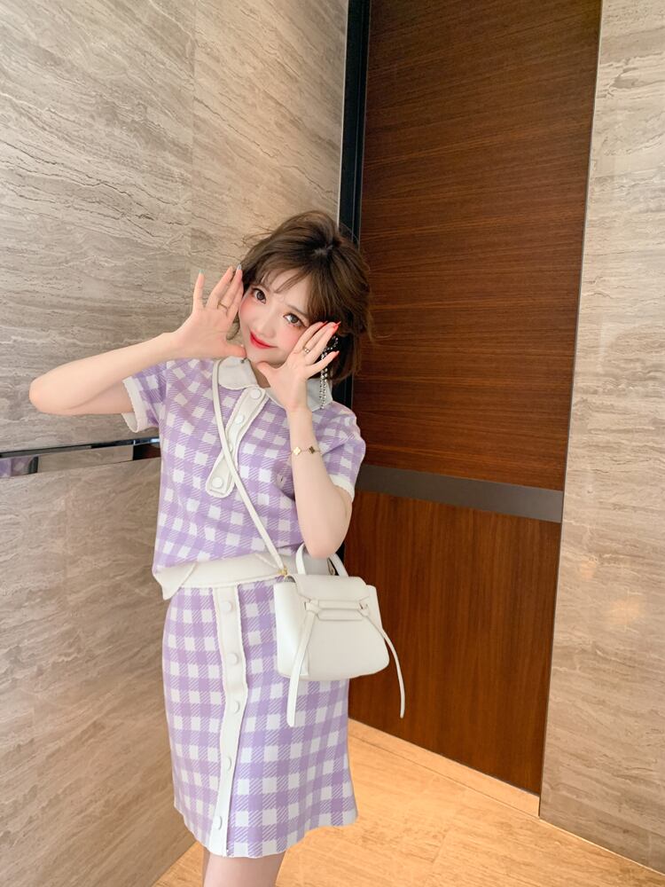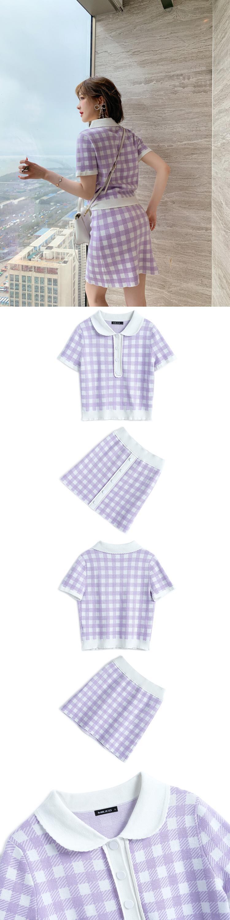 格子柄トップス ニットスカート スプリング 春物 MIUCO72420826808