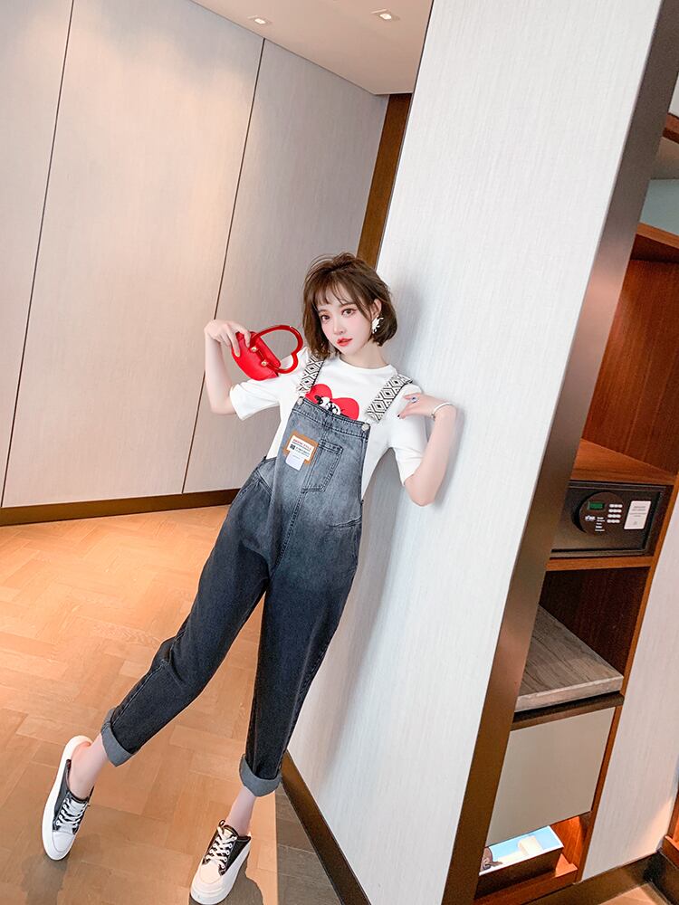 プリントラウンドネックTシャツ オーバーオール スプリング 春物 Oネック MIUCO71810558780