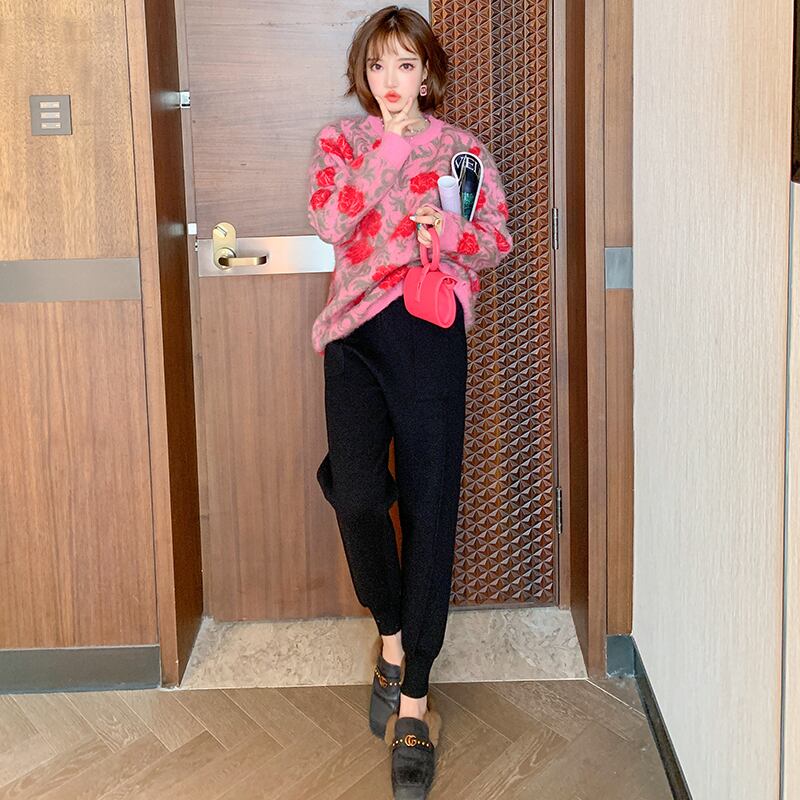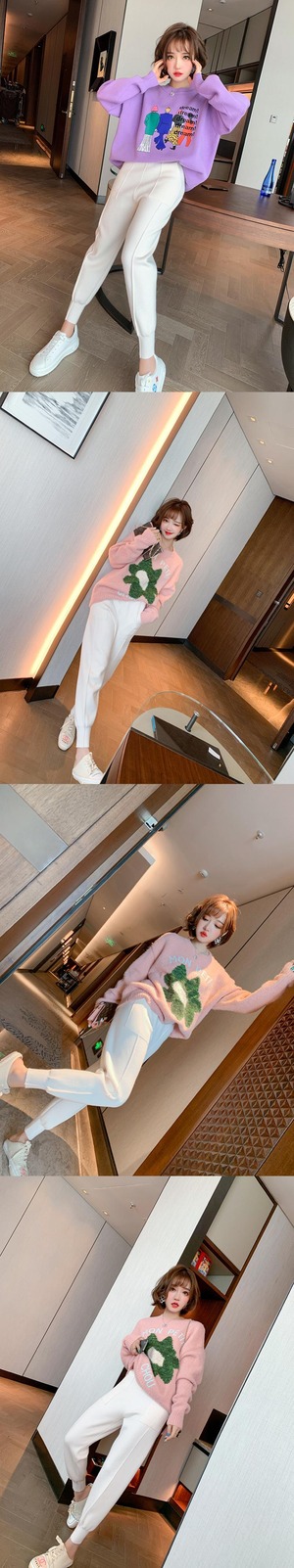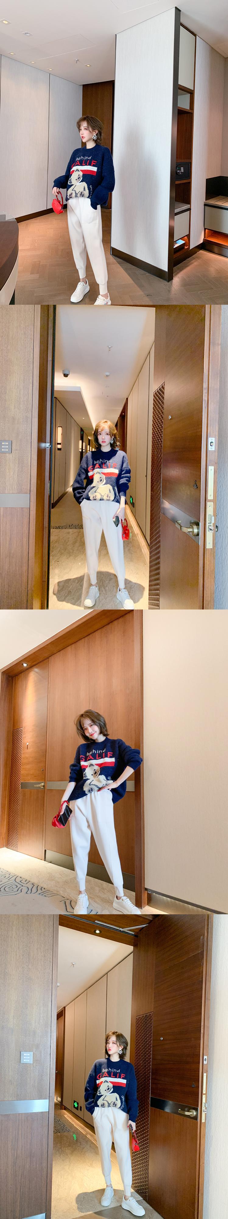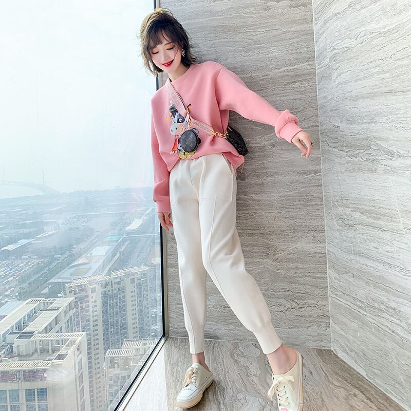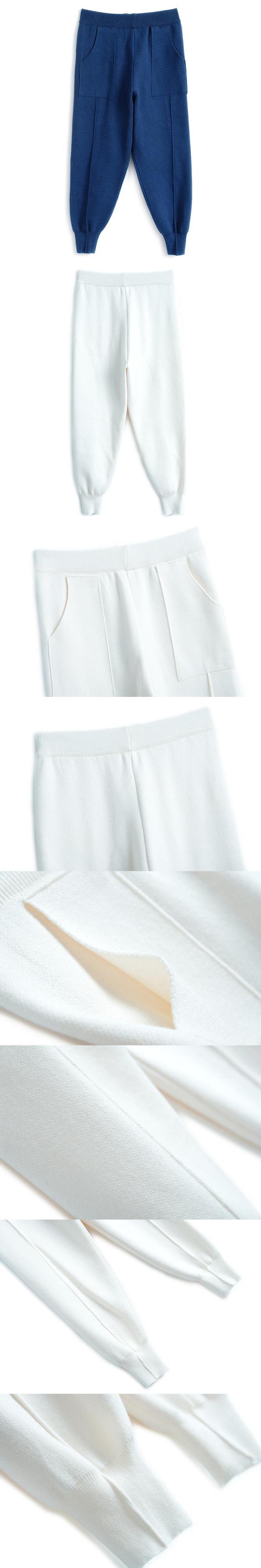 ハイウェストニットカジュアルパンツ オータムウィンター 秋物 冬物 ステッチ MIUCO35223274402