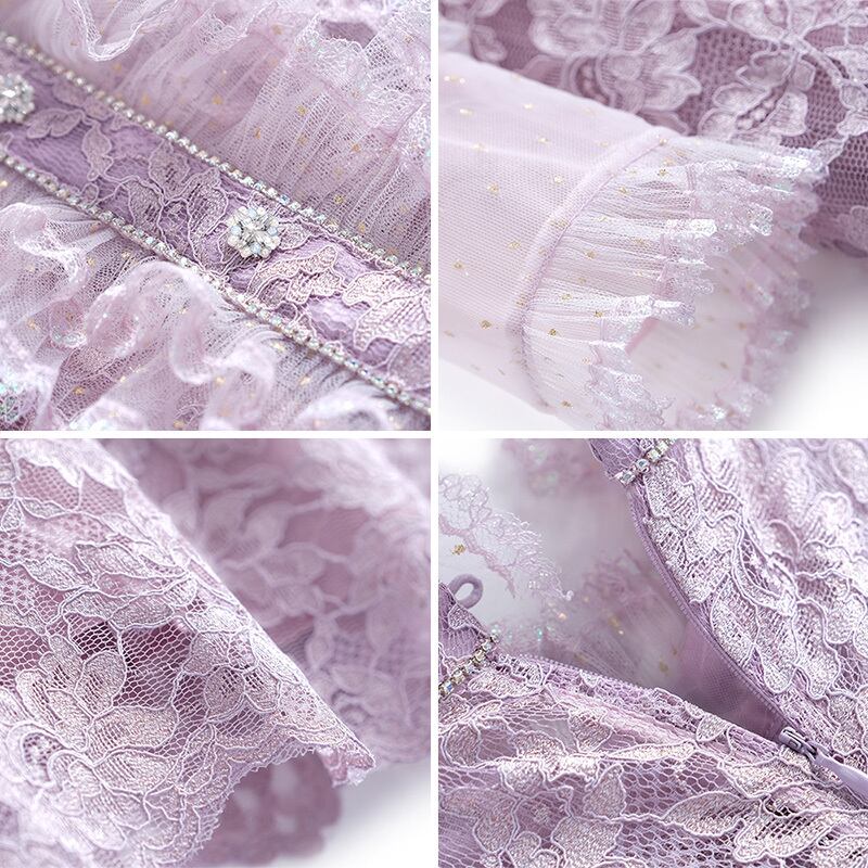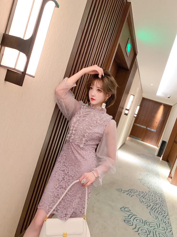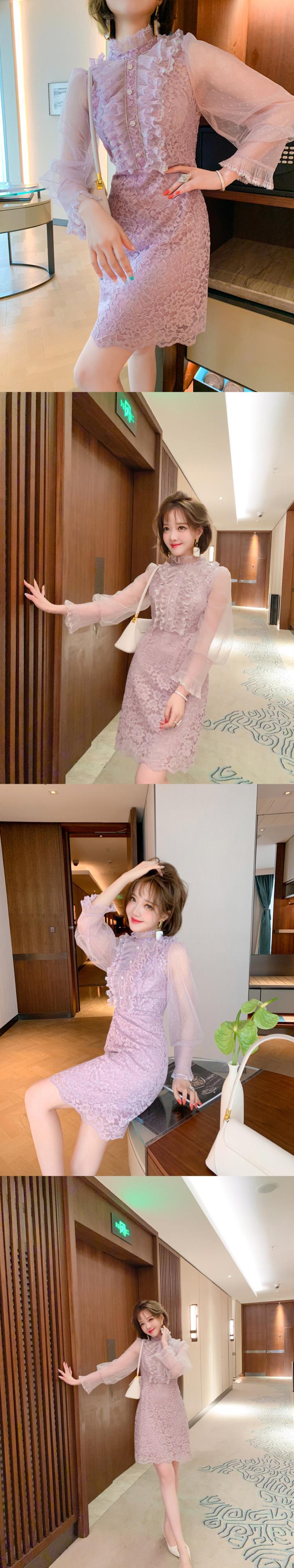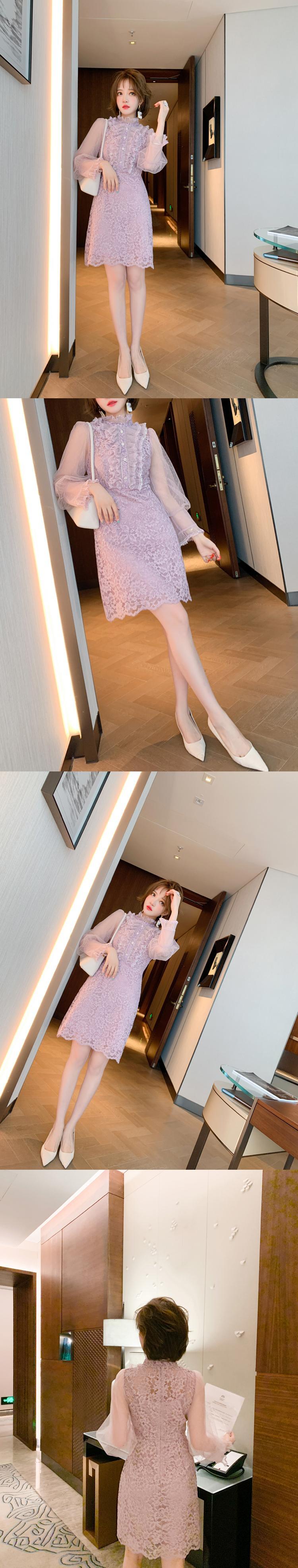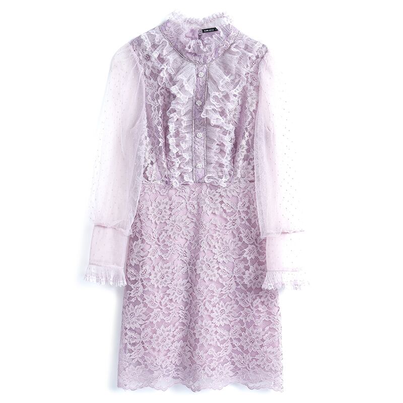 レースカラーチェーン ドレス スプリングスタイル レッド 刺繍 春物 MIUCO46025005784