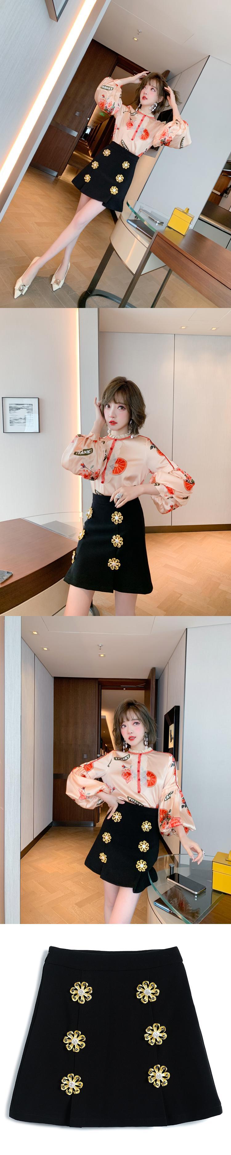 Flowerデザイン ウェストAライン薄手スカート フラワーデザイン MIUCO6896439328