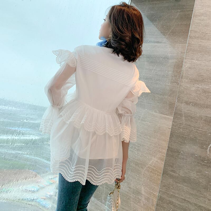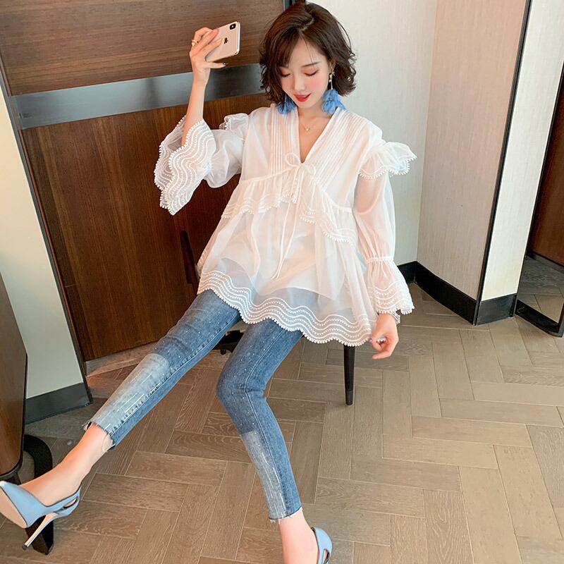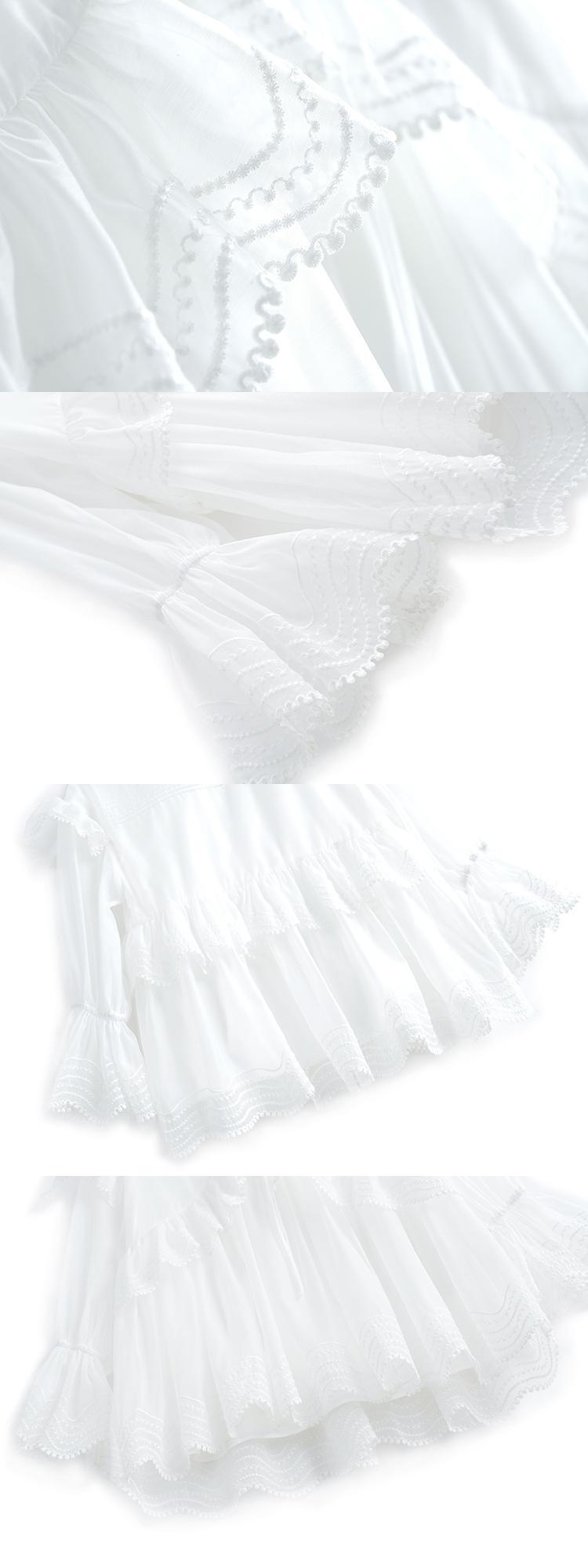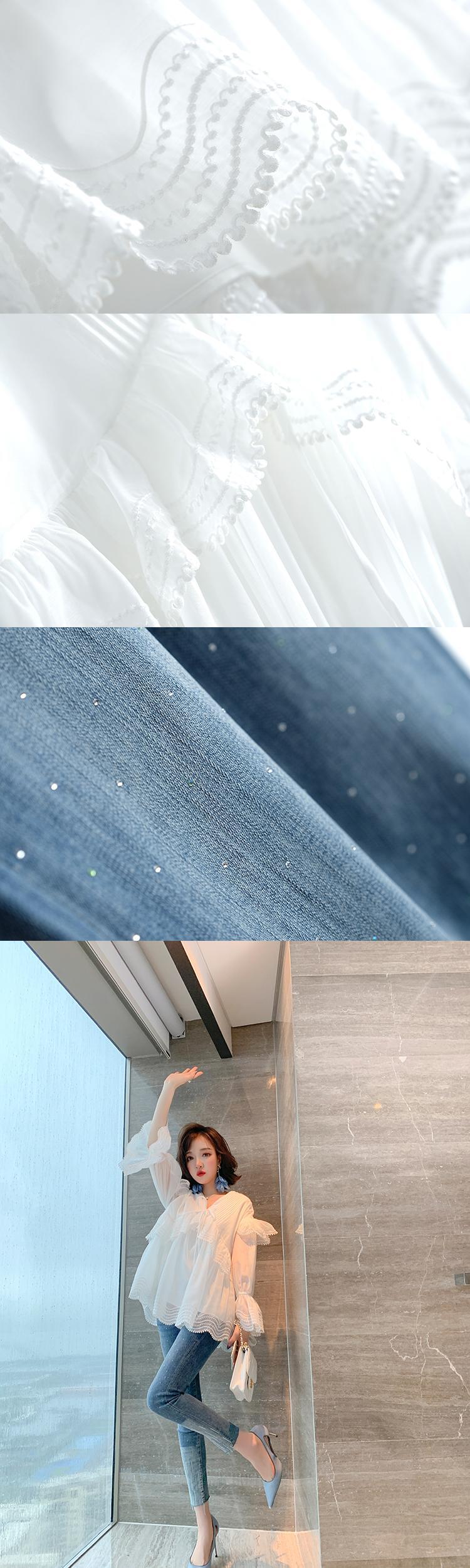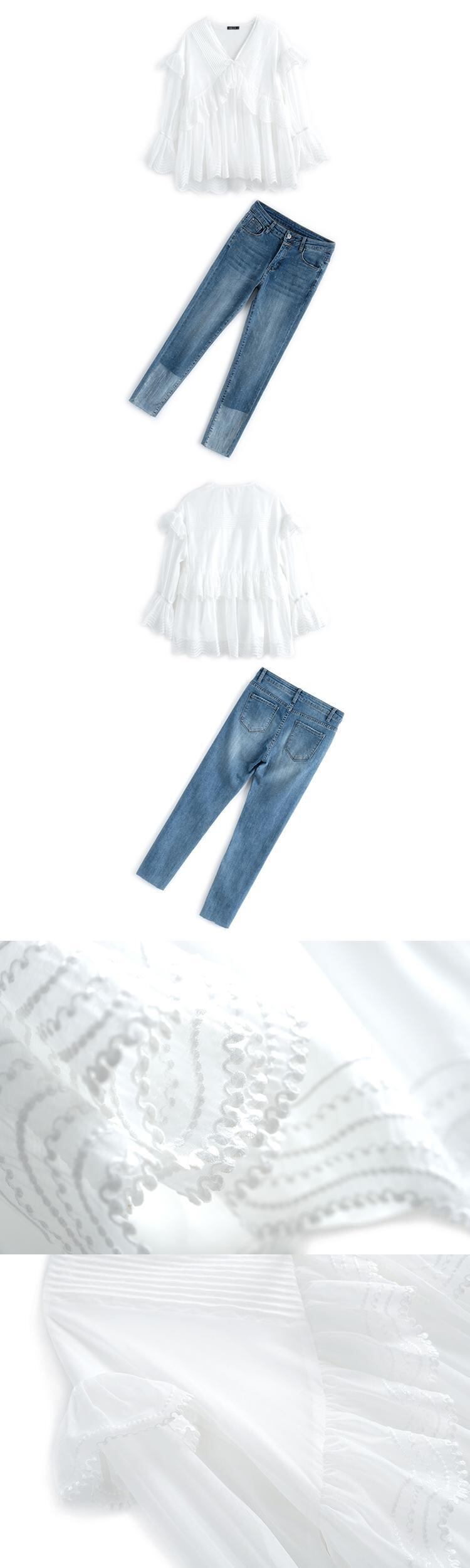 プリーツレースVネックルーズトップス カラージーンズ オータム 秋物 MIUCO22208349071