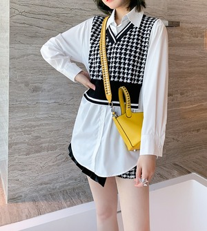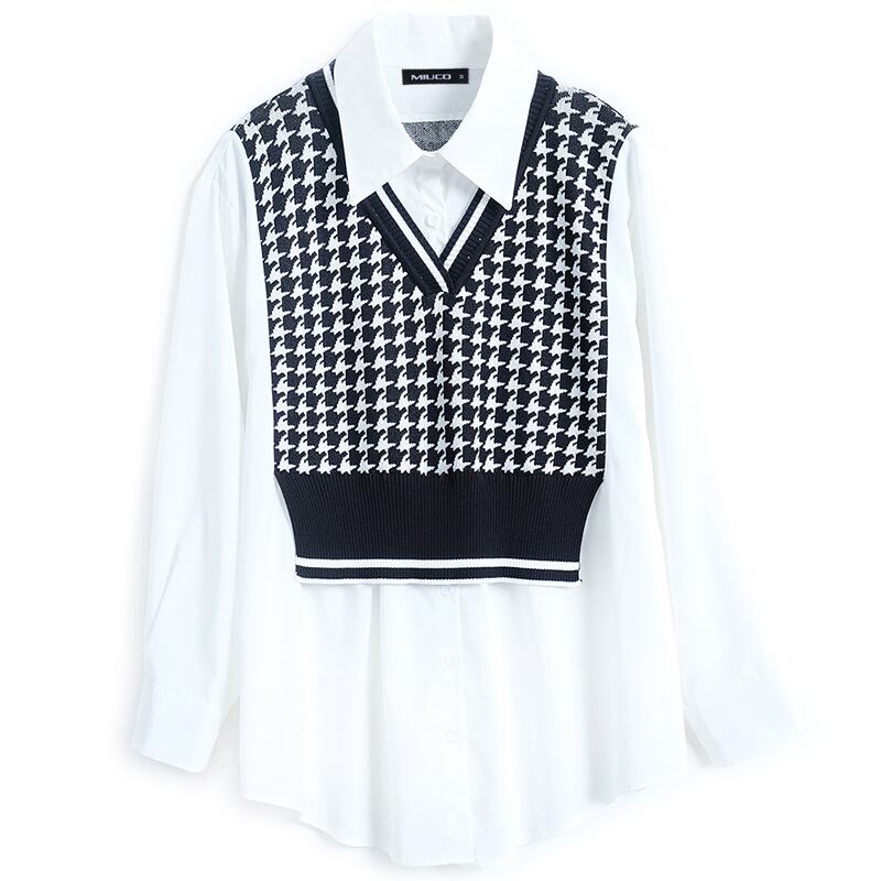 ニットシャツ スプリング 春物 ステッチ MIUCO7519446043