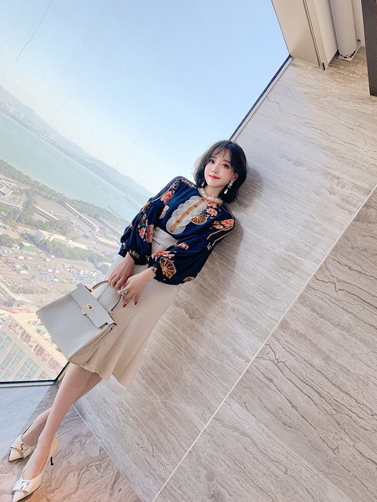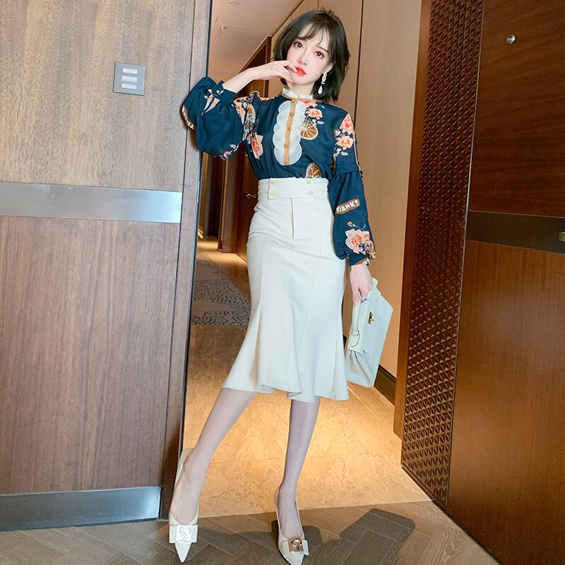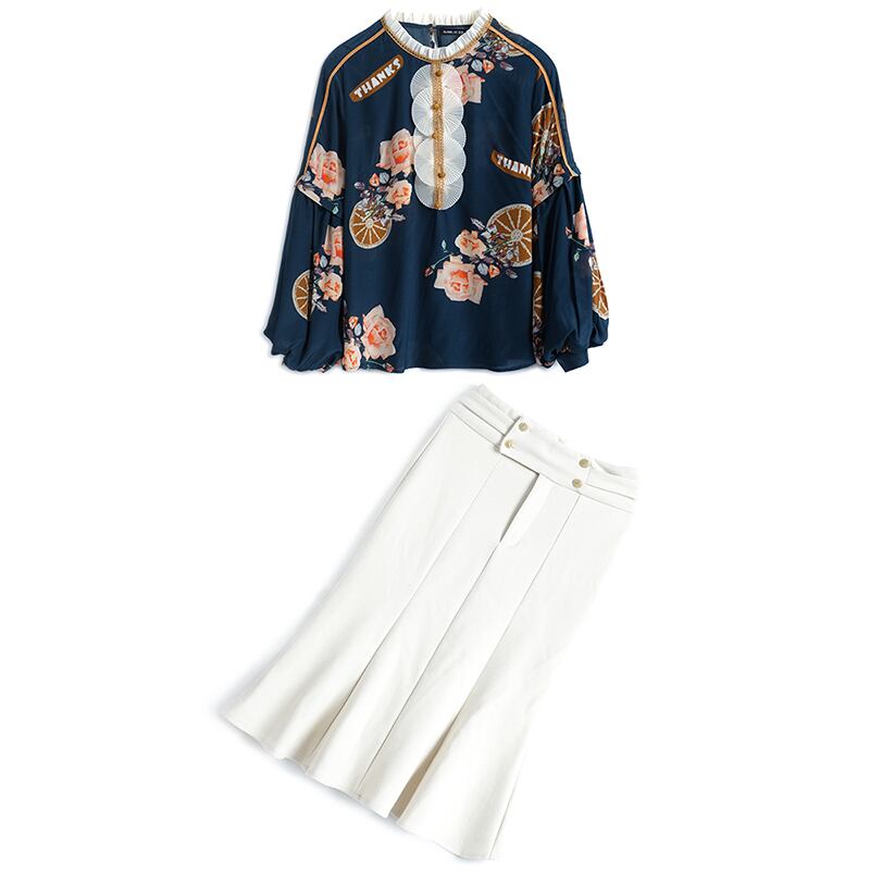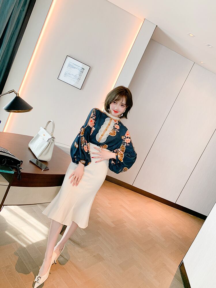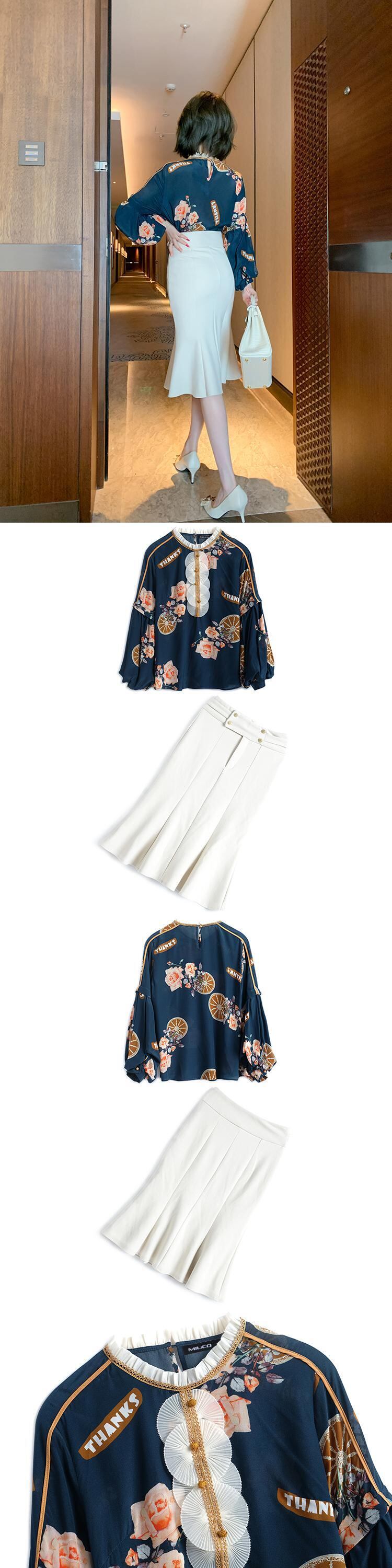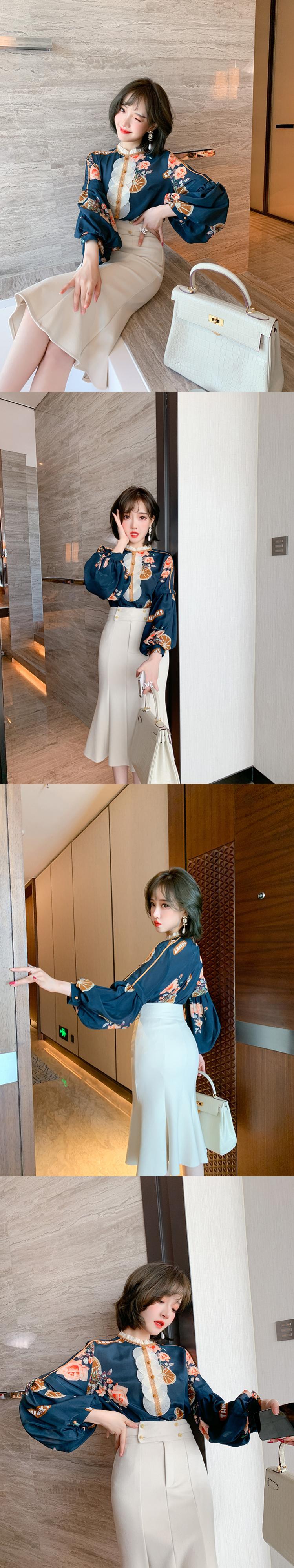 プリントスリーブシャツ スカート スプリングオータム ランタンスリーブ 春物 秋物 MIUCO36508556467