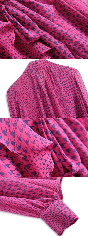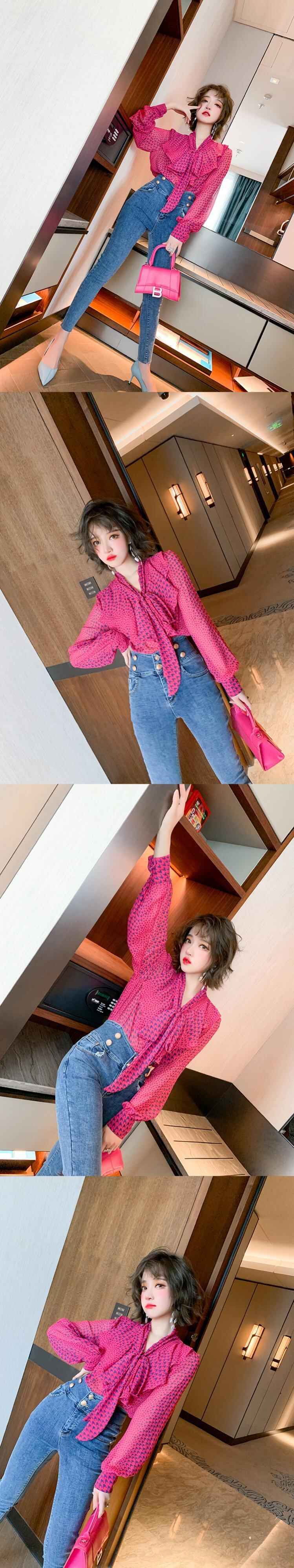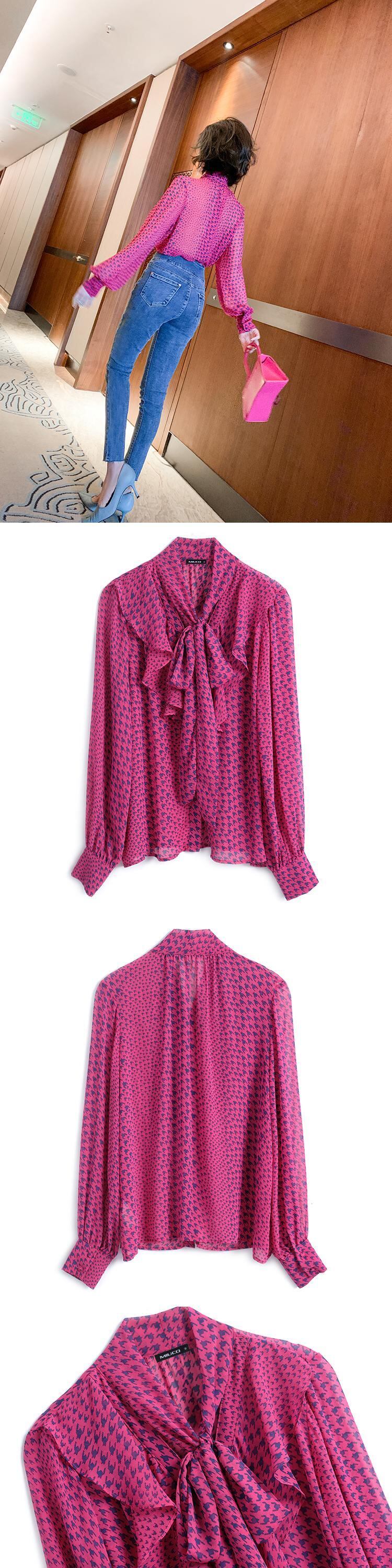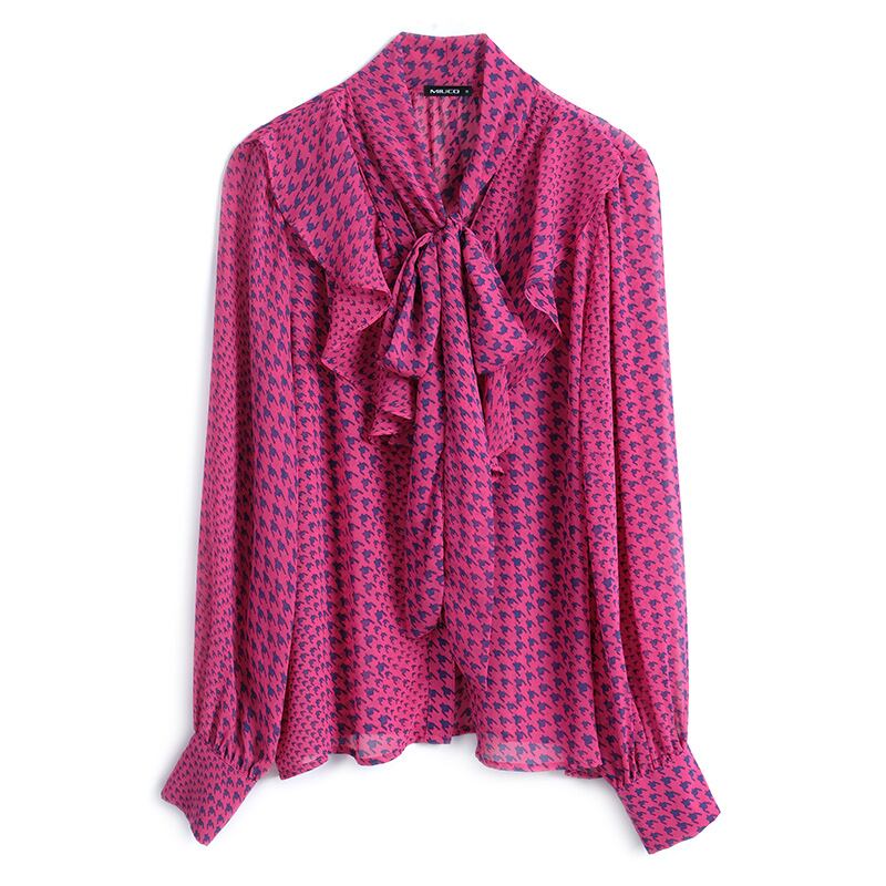 プリント柄リボンシャツ スプリングオータム レース 春物 秋物 レースアップ MIUCO67273115177