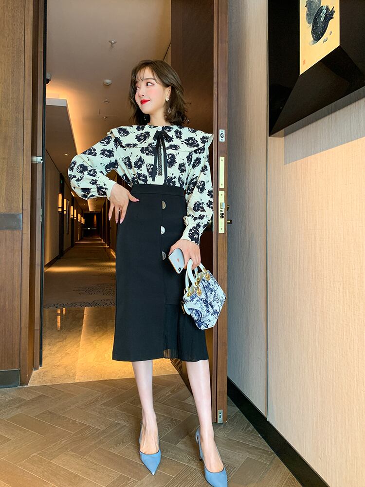 ブレストアシンメトリープリーツハイウェストスリムスカート オータムウィンター 秋物 冬物 ステッチ MIUCO27972902618