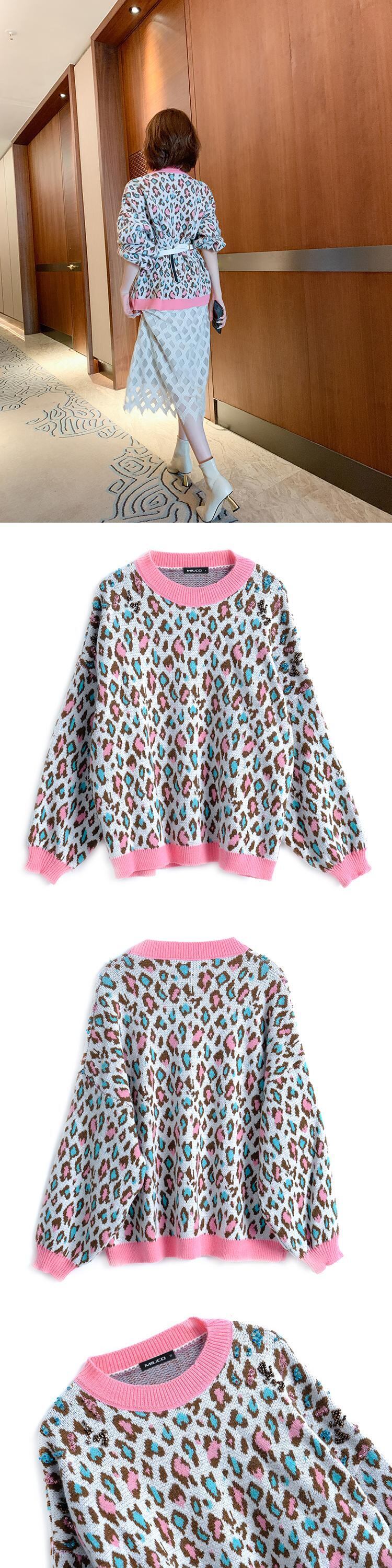 レオパードプリント柄ルーズセーター レディースウィンター 冬物 MIUCO24395122295