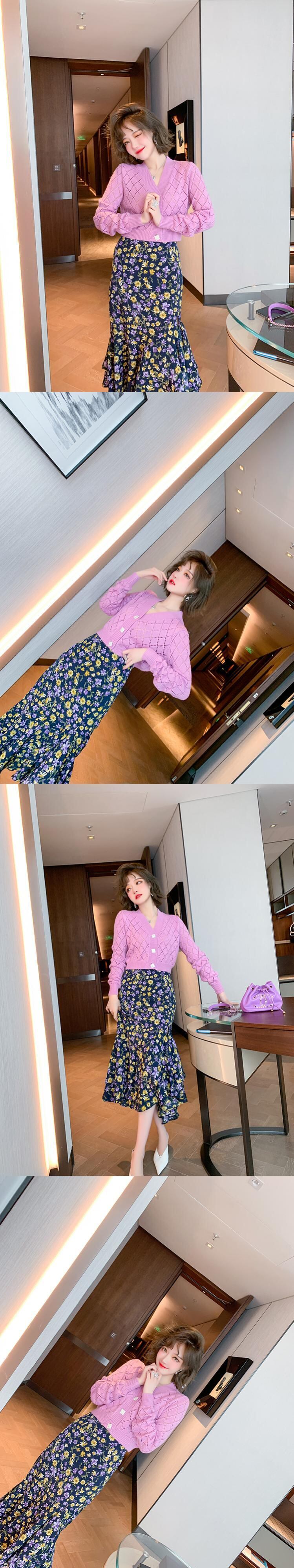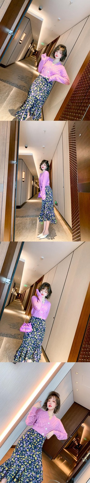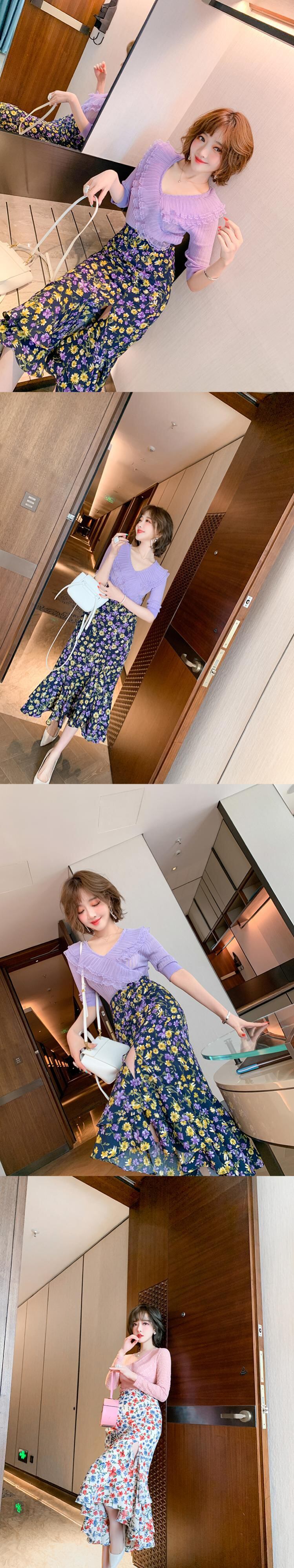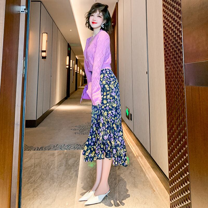 スタンダードフローラルハイウェストウェストスリムダブルスカート オータム レトロ 秋物 花柄 MIUCO59444095652