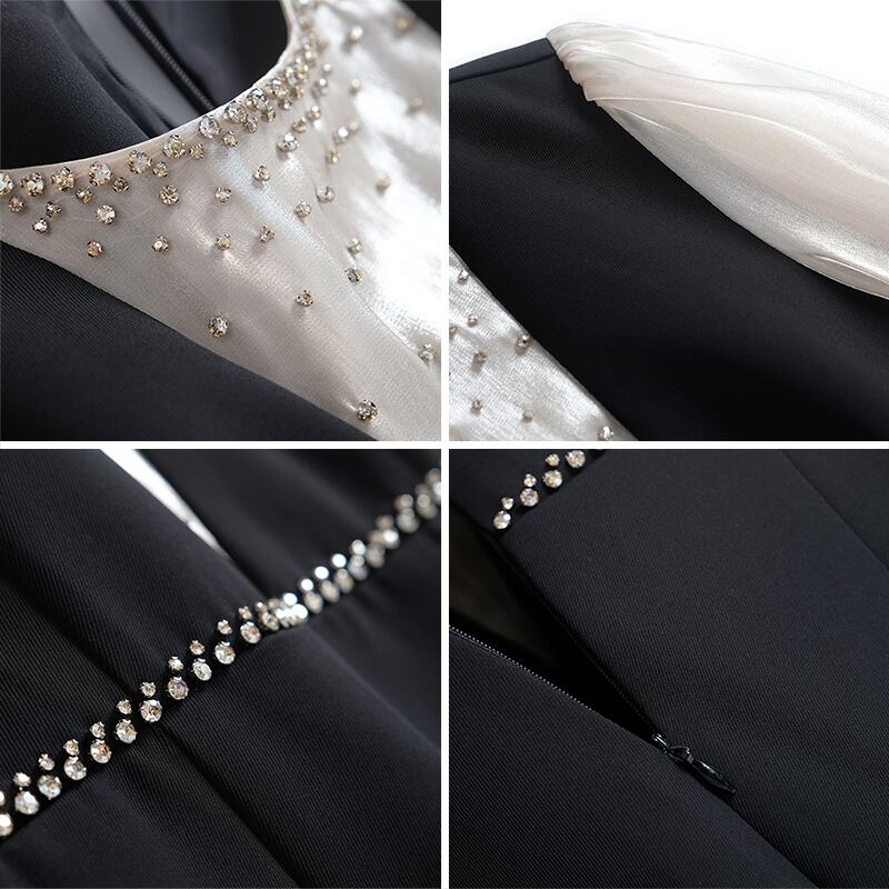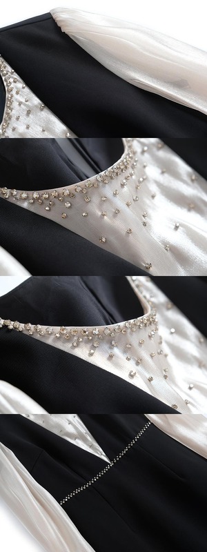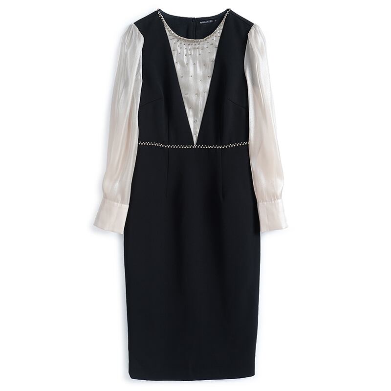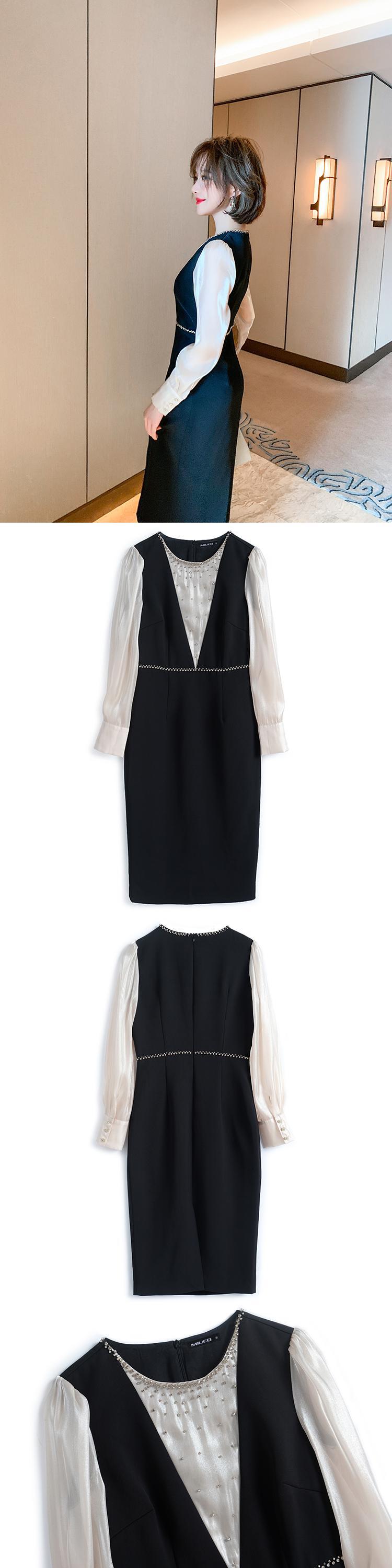カラービーズ スリムウェストドレス オータムスタイル 秋物 ステッチ MIUCO34209804010