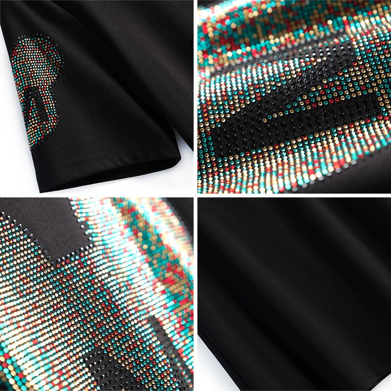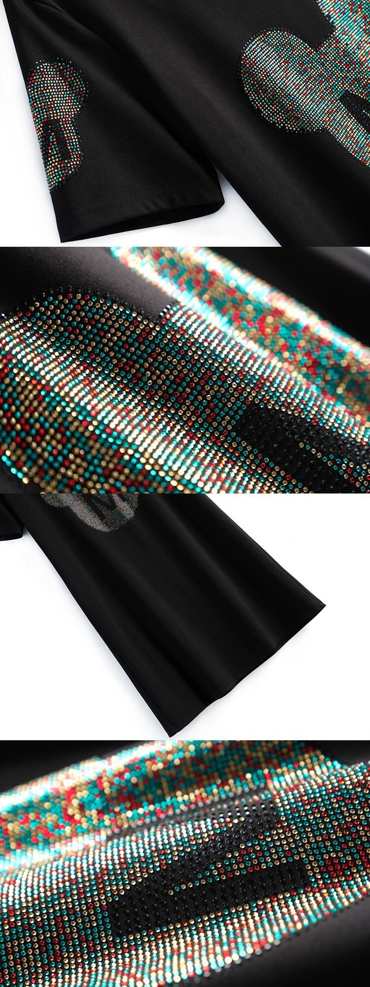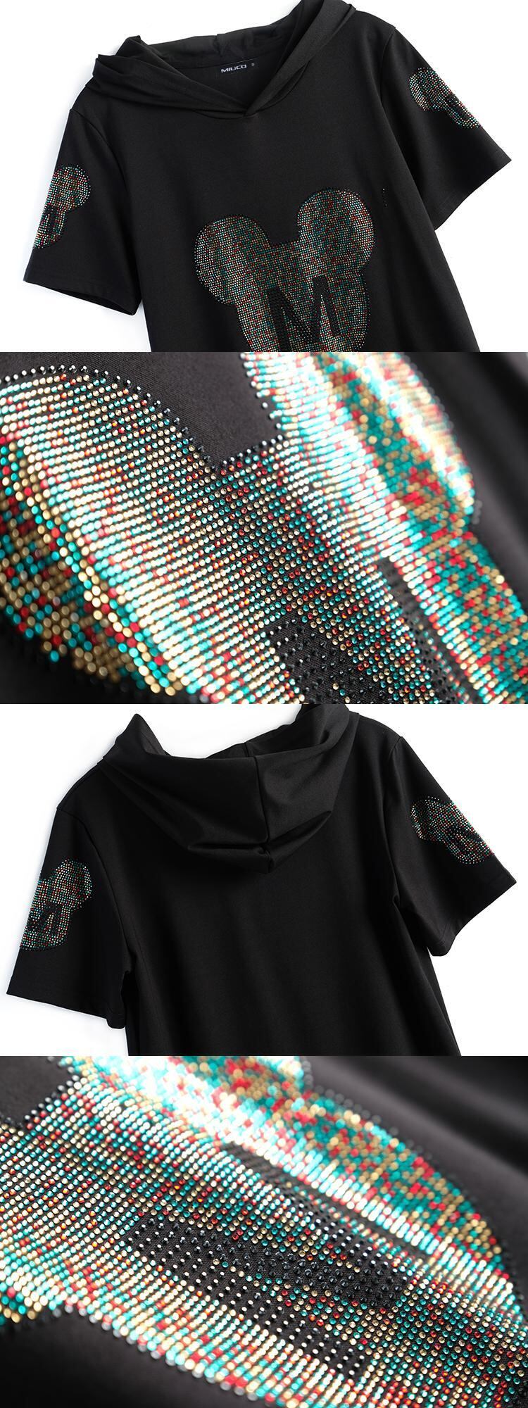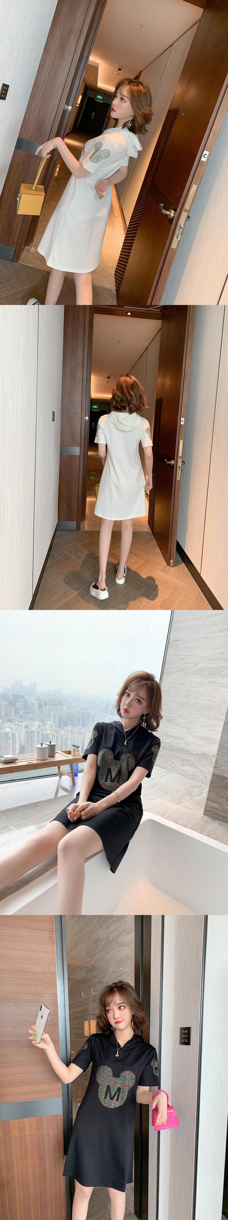 パターンカラーラインストーンフードTシャツ ドレス MIUCO9900428799