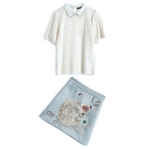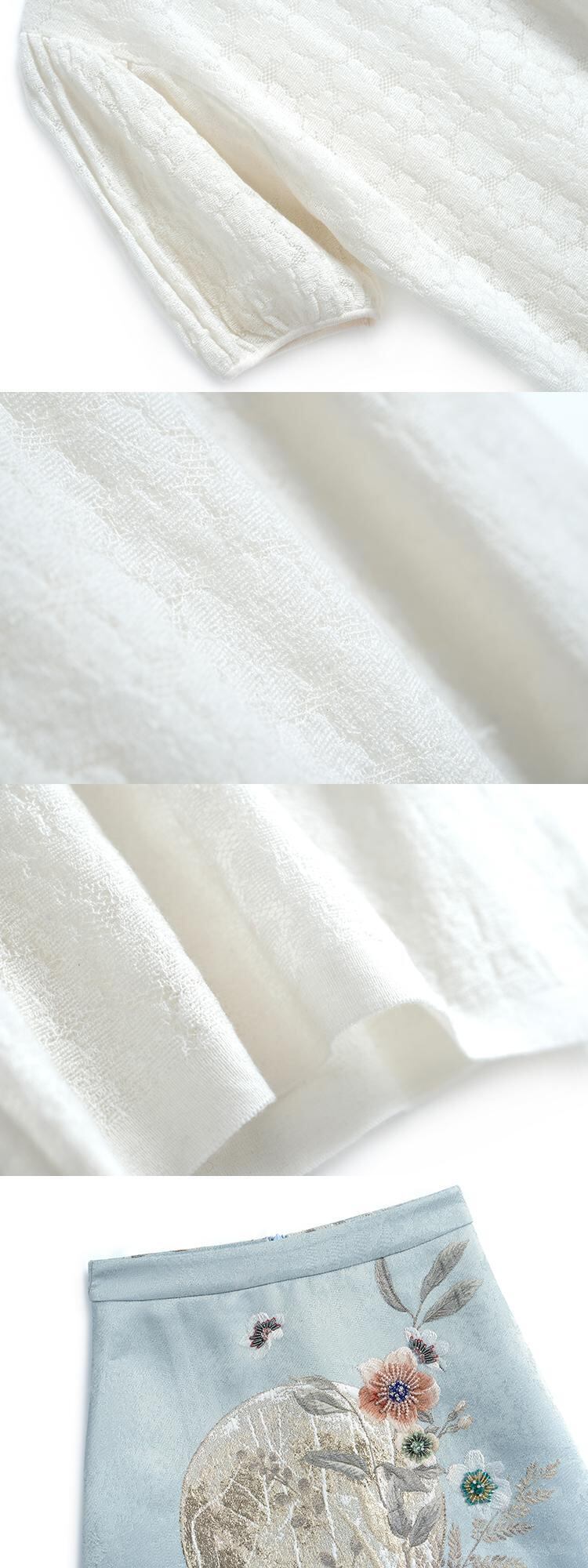 カラージャカードニットトップス スタンダード刺繍Aラインスカート オータム レトロ 秋物 MIUCO20895031439