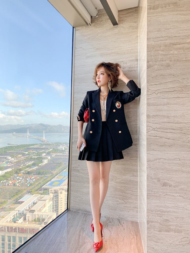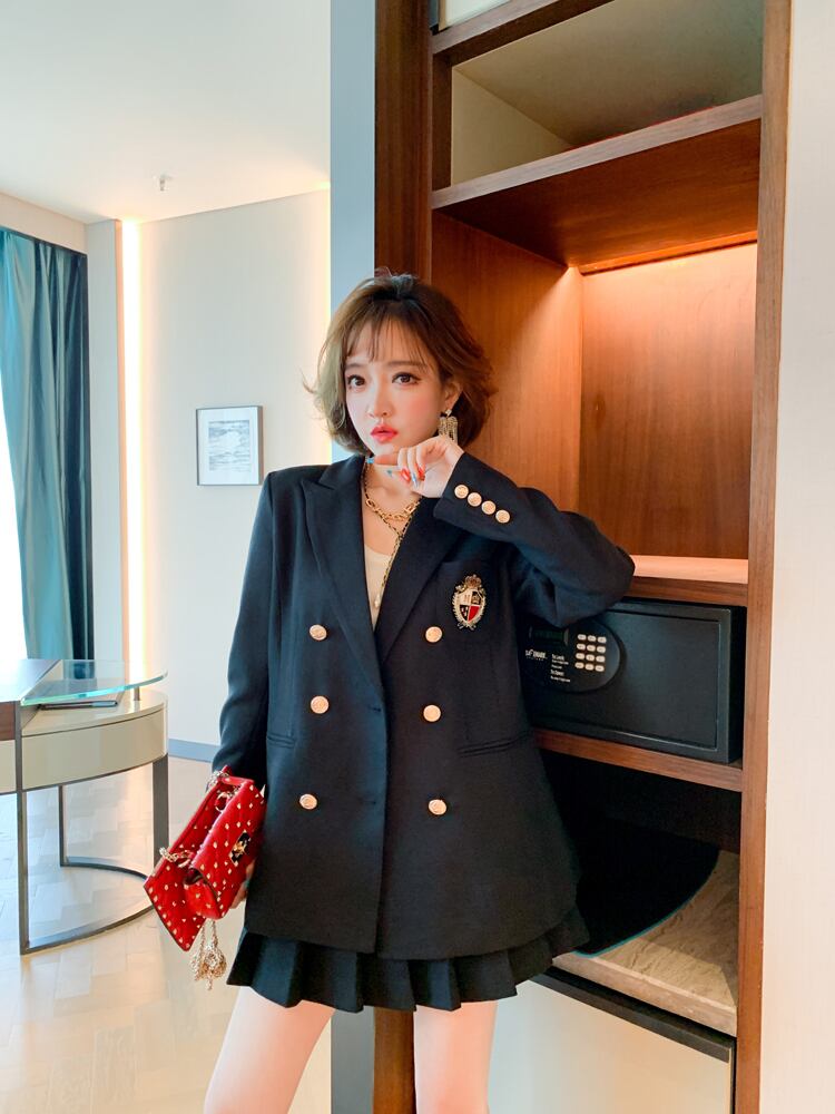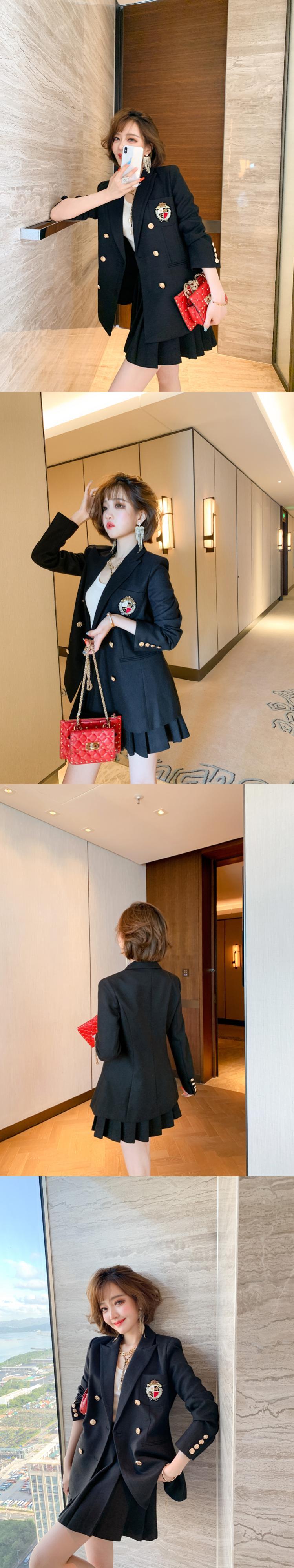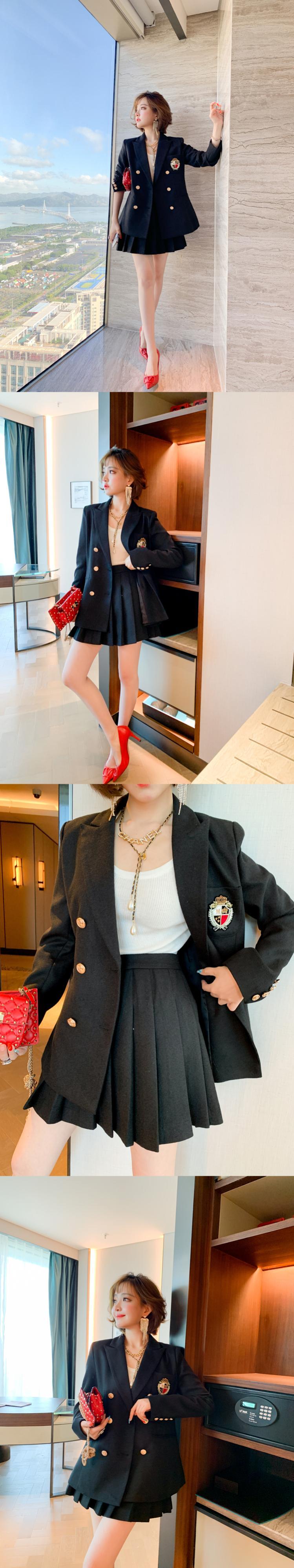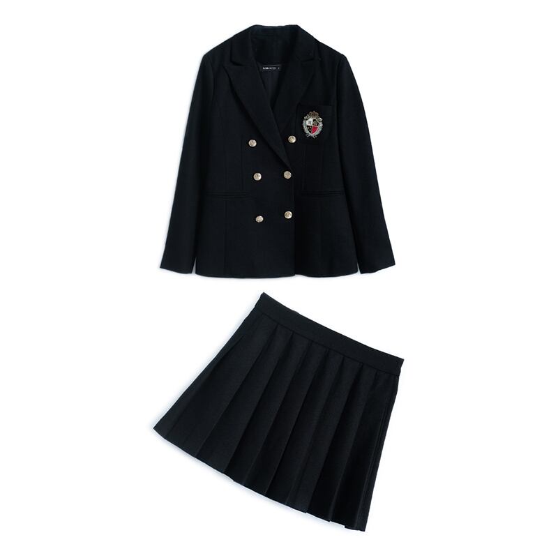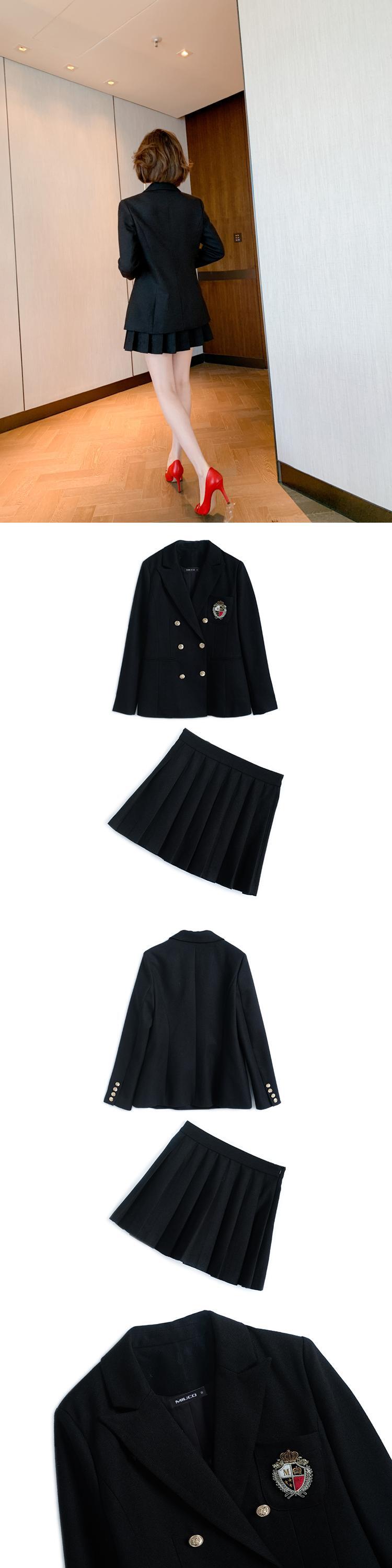 ダブルブレストブレザー プリーツスカート オータム 秋物 MIUCO51942007011