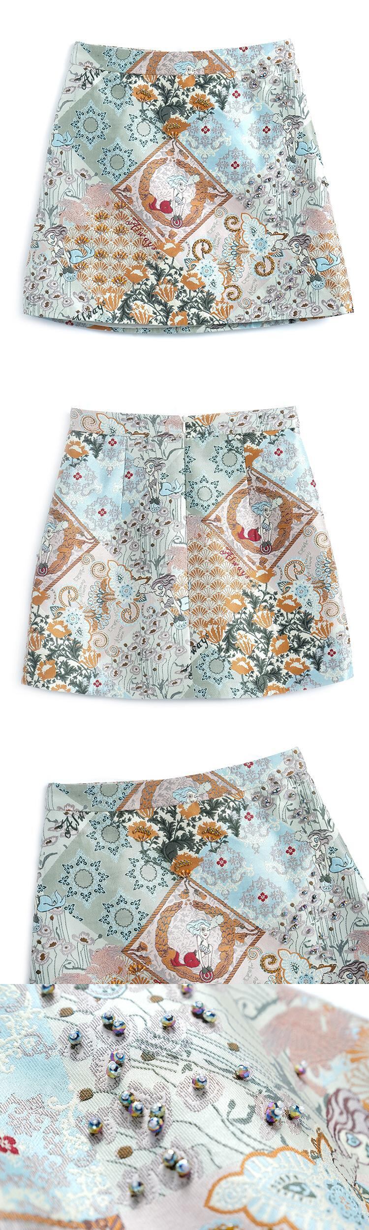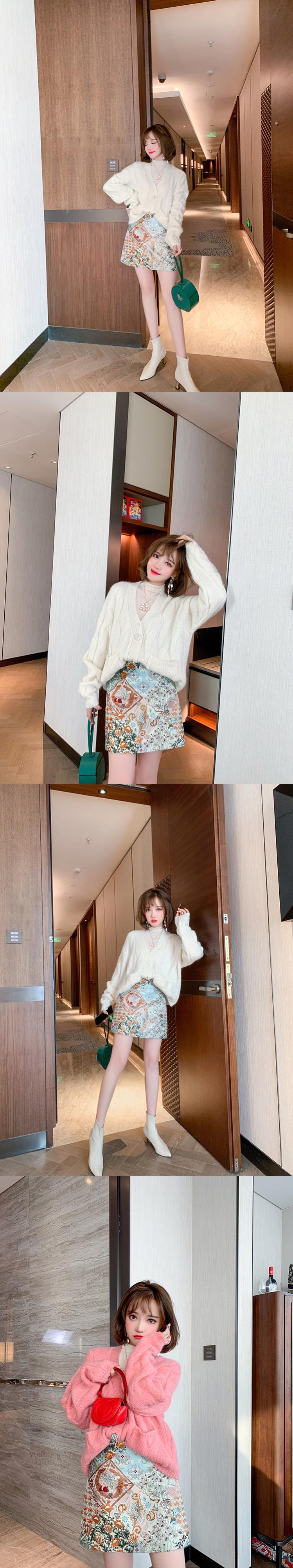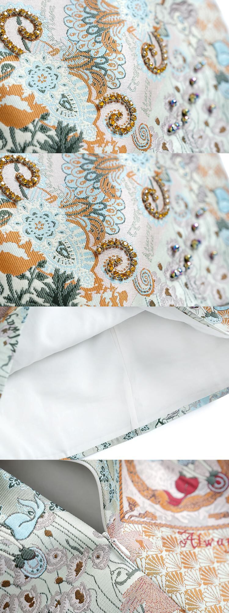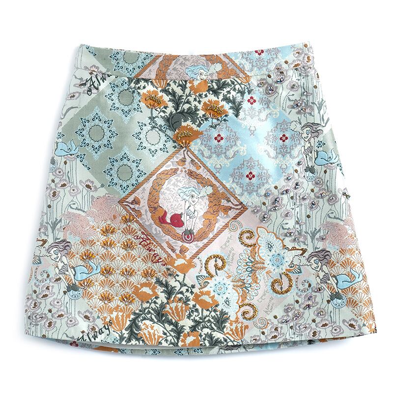 スタンダードジャカードハイウェストウェストAラインショートスカート オータム レトロ 秋物 MIUCO13085091516