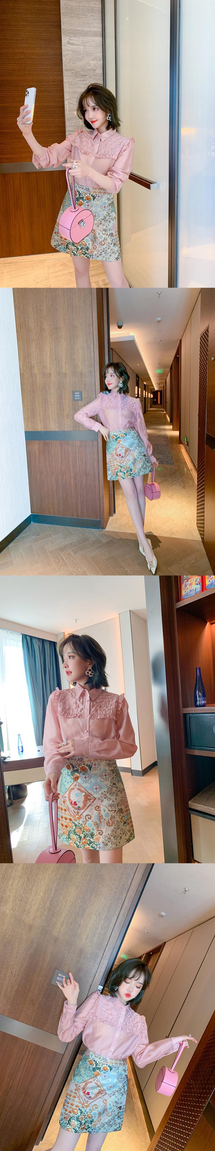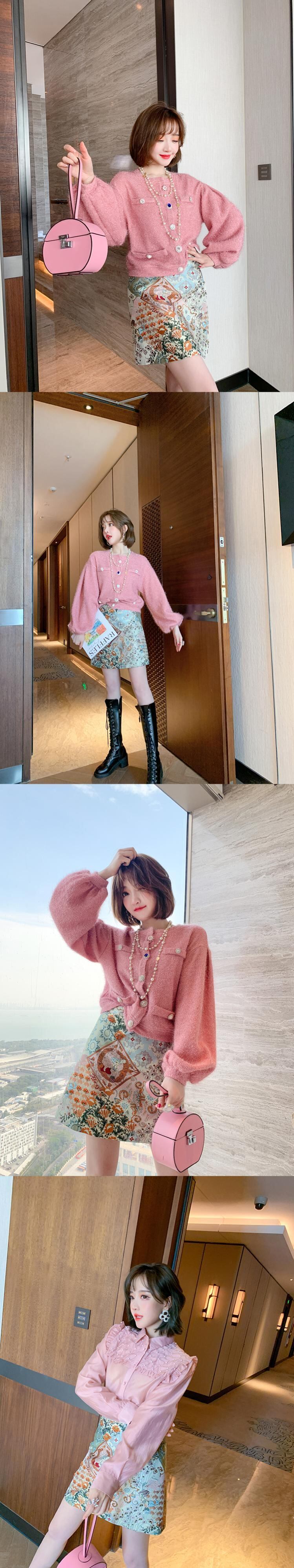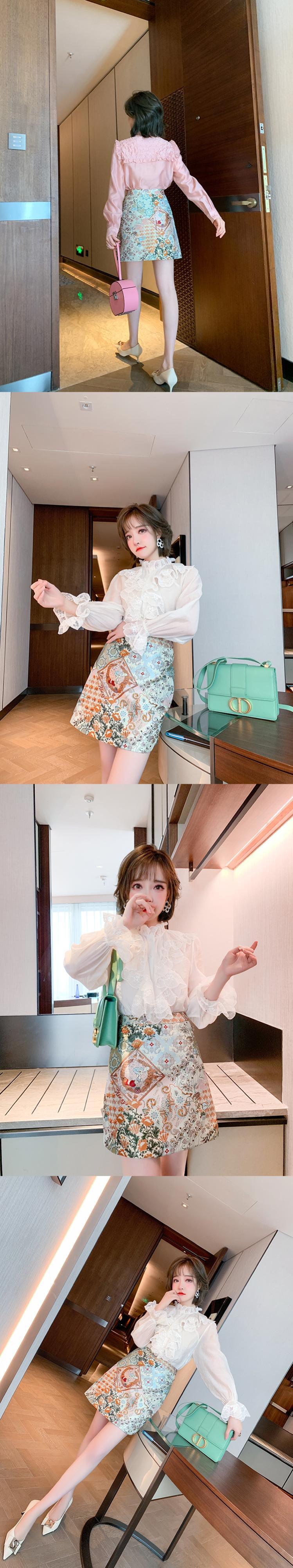 スタンダードジャカードハイウェストウェストAラインショートスカート オータム レトロ 秋物 MIUCO13085091516