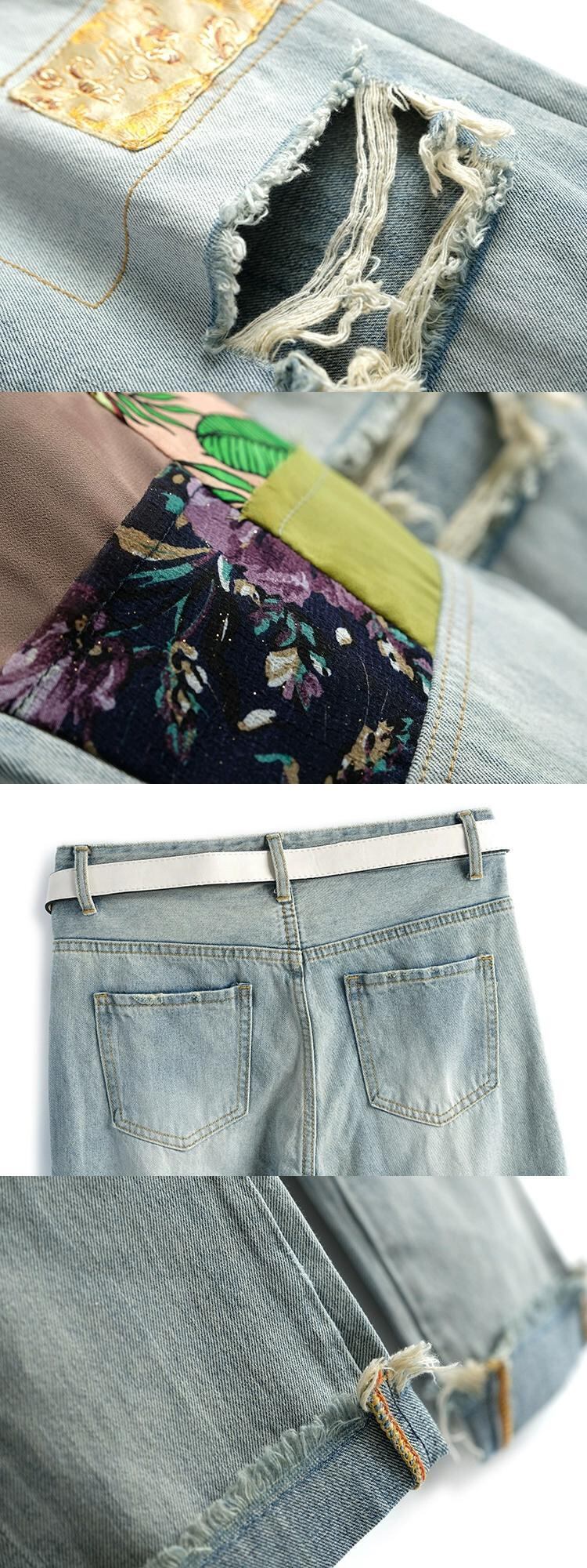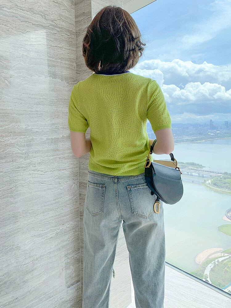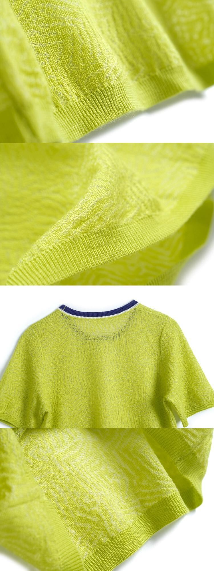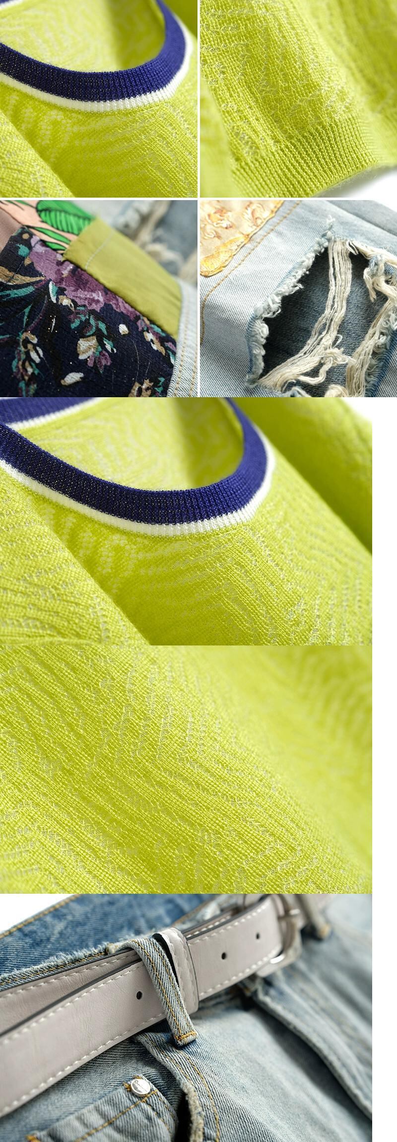 MIUCO 対照的なスレッドラウンドネックニットトップ + 破れた穴痩身ジーンズ年齢軽減スーツ 2023 夏の新スタイル サマー 夏物 Oネック MIUCO12618715232