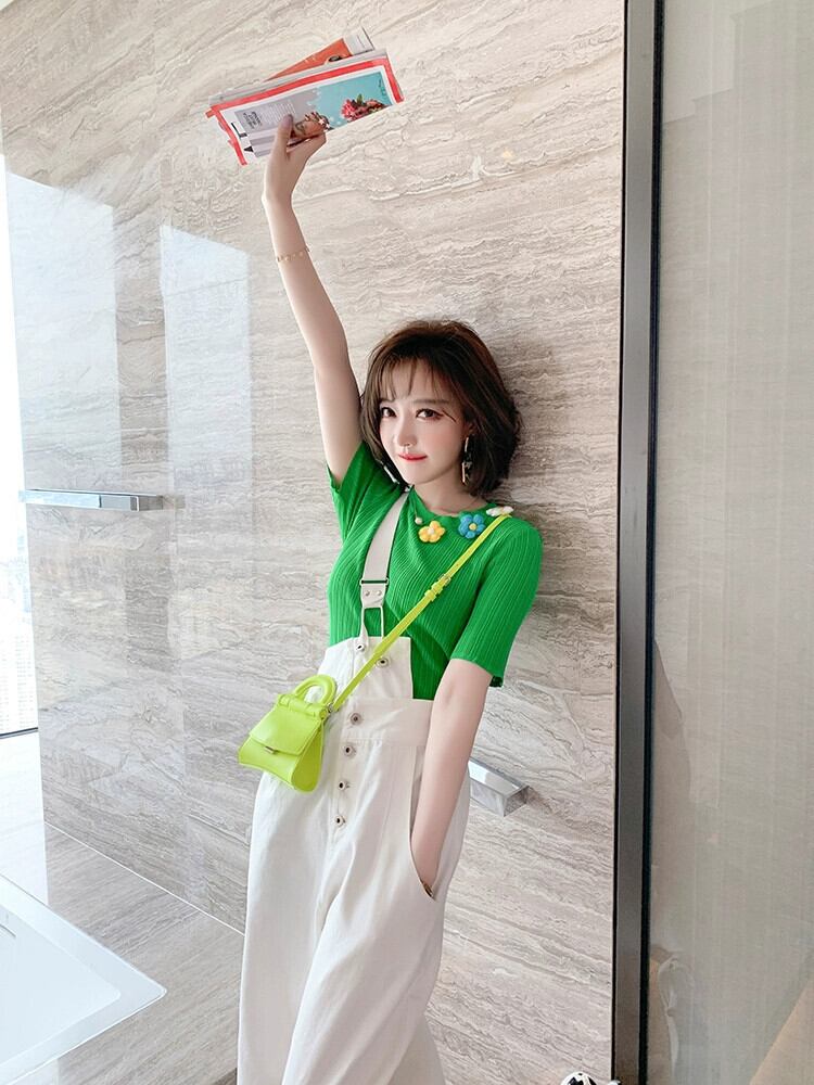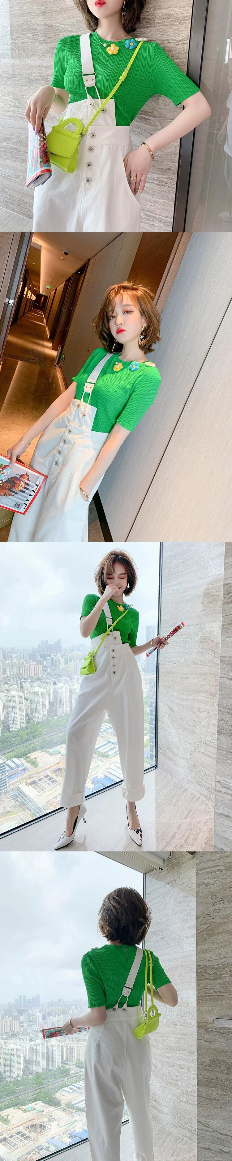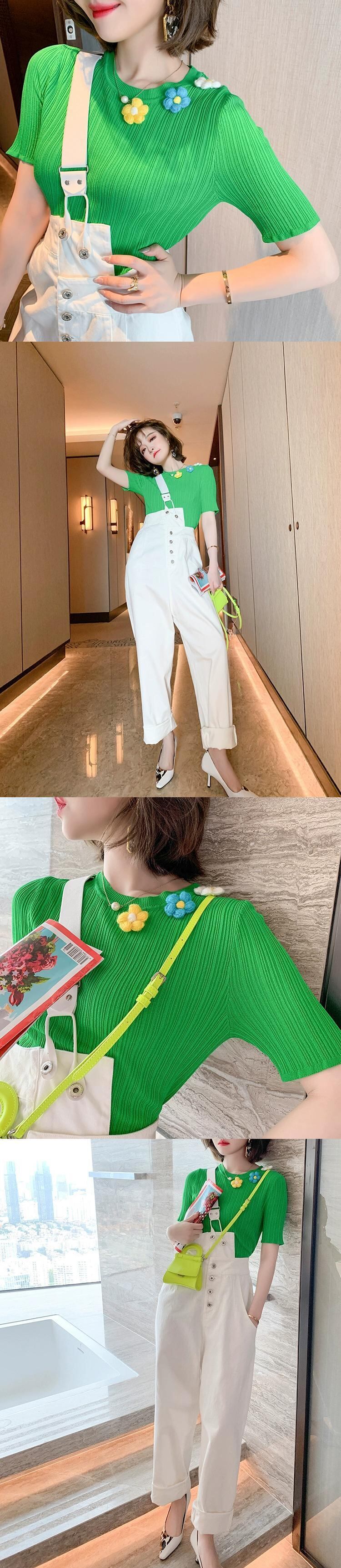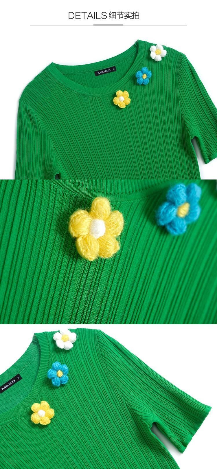 MIUCO 立体花装飾縦ストライプテクスチャースリムフィット多用途セータートップス女性 2023 フラワーデザイン MIUCO48743643272