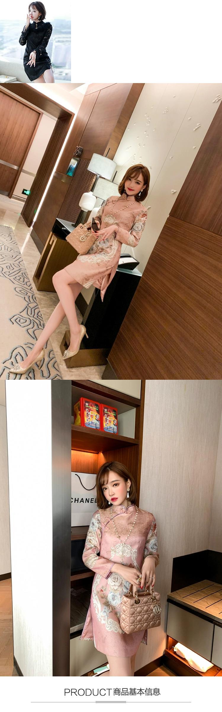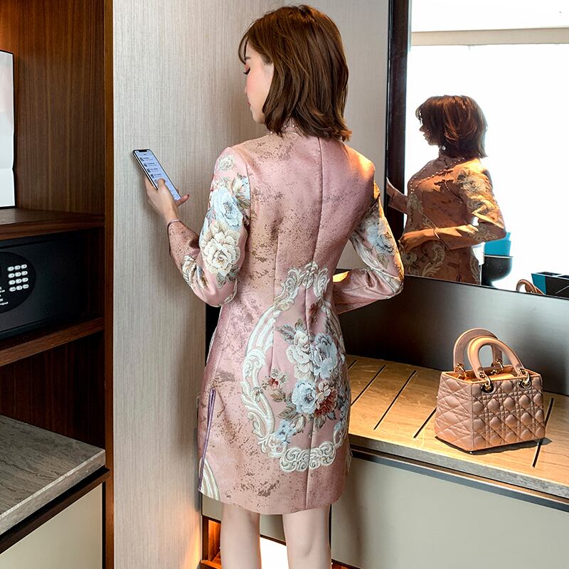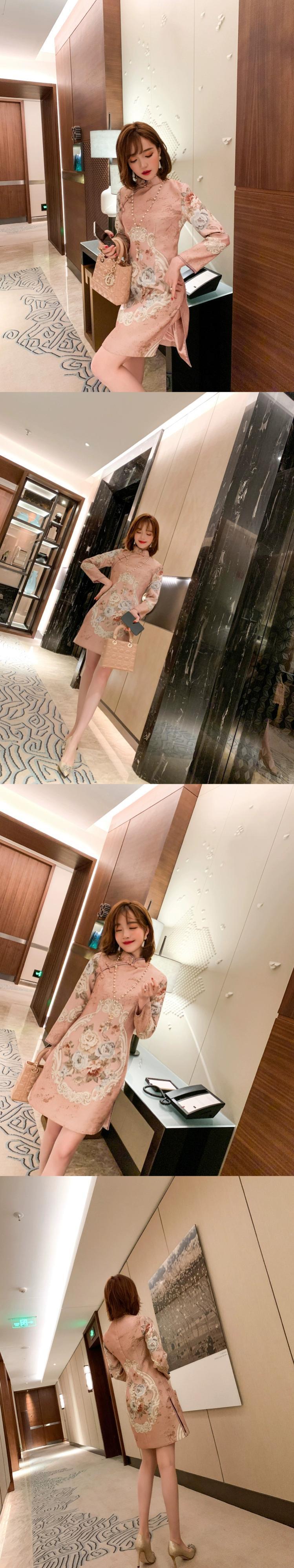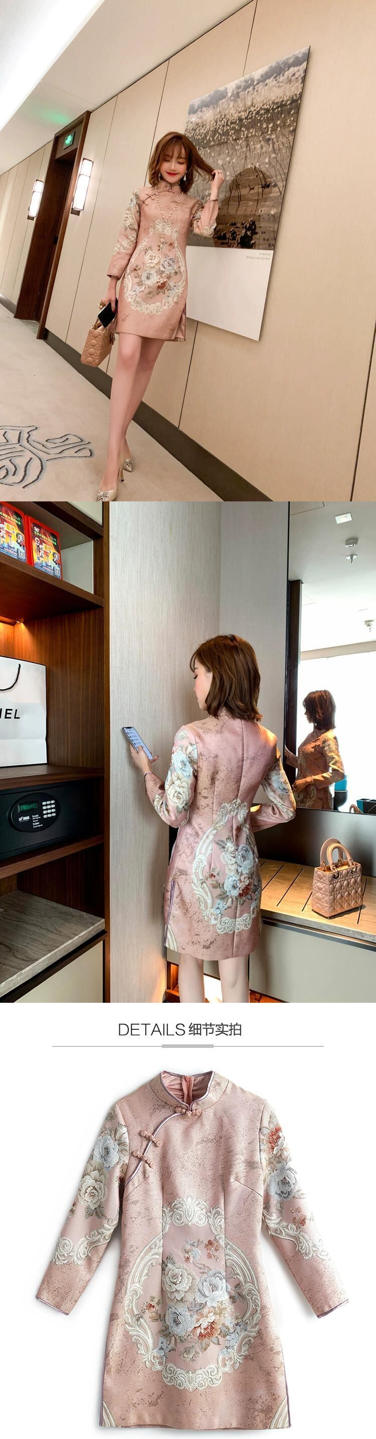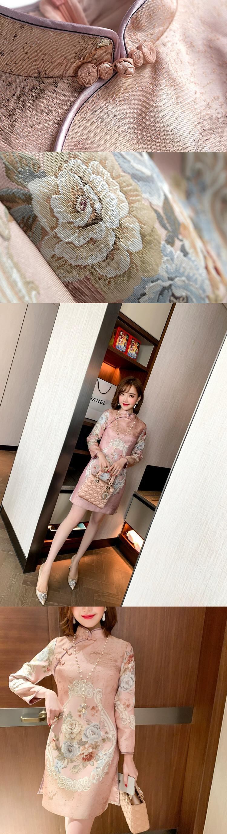 MIUCO チャイナ風 スタンドカラー パンボタン ジャガード スリムスリット 改良版チャイナドレス レディース【在庫あり】 MIUCO22478101854