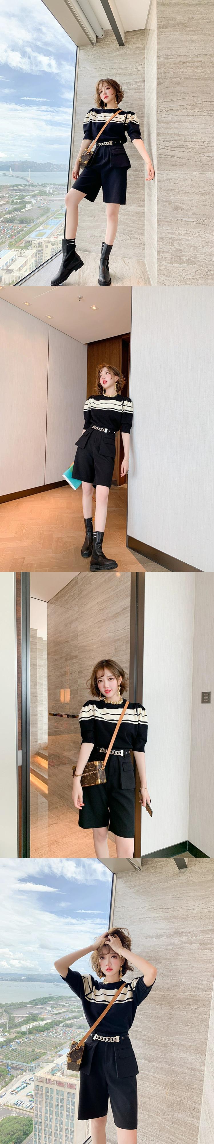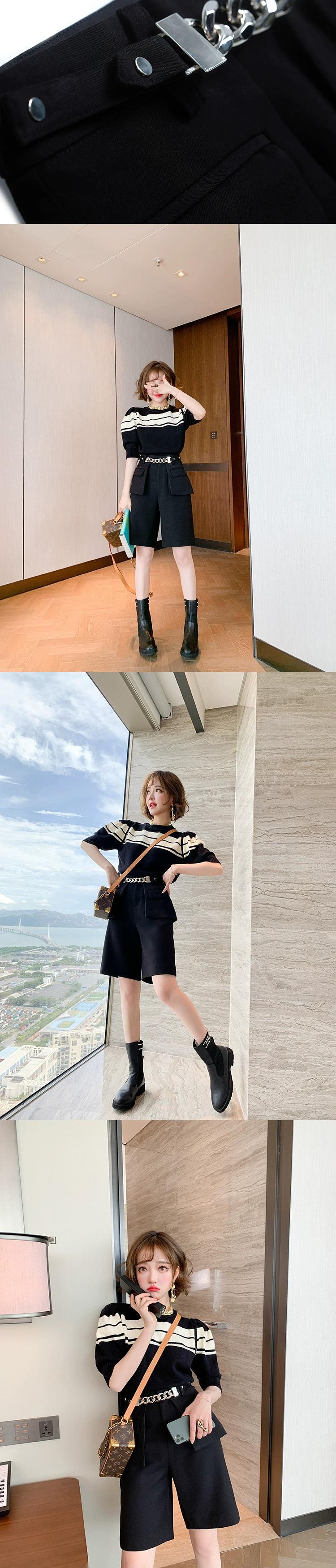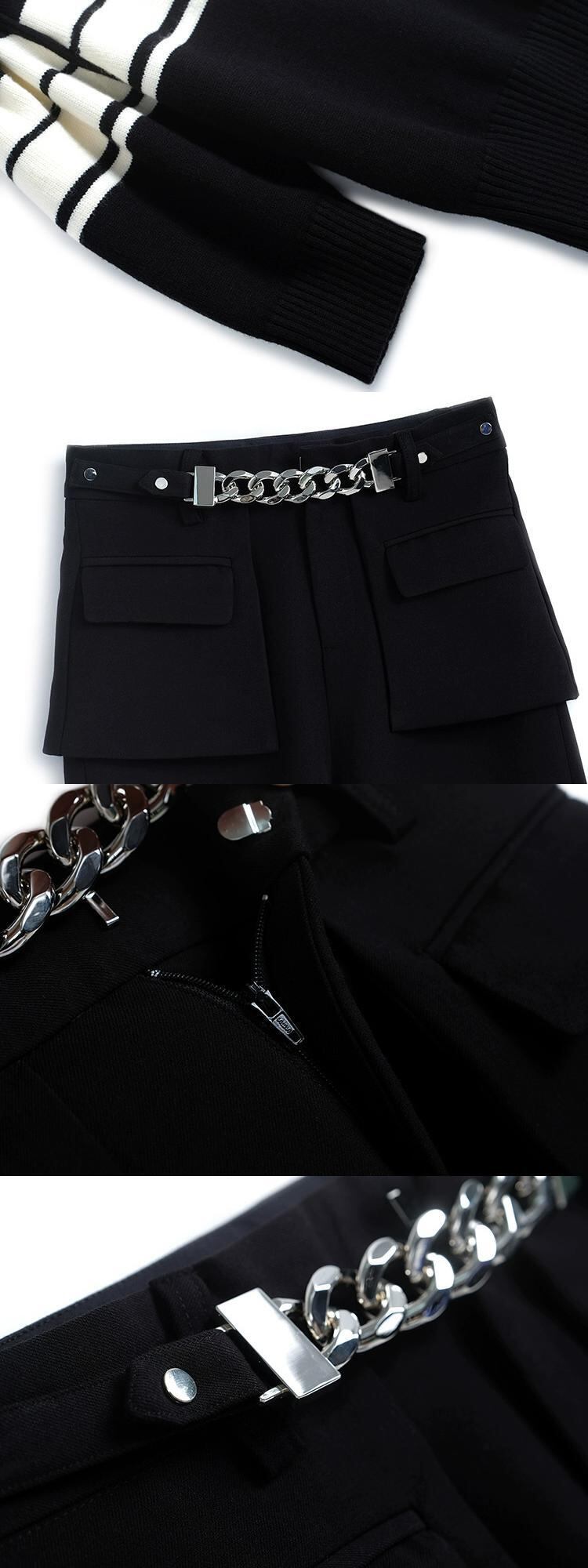 MIUCO コントラストカラーストライプラウンドネックセーター + パーソナライズされたスプライシングスカートワイドレッグミディアムパンツスーツ女性の 2023 秋 オータム 秋物 Oネック MIUCO10541749963
