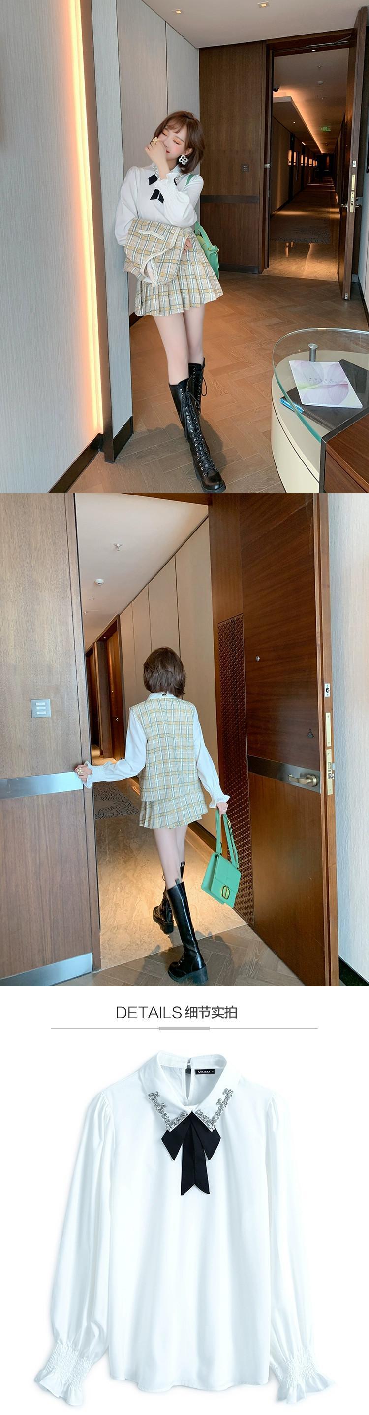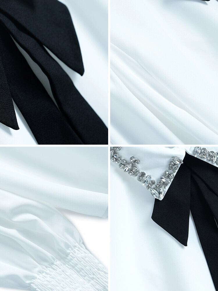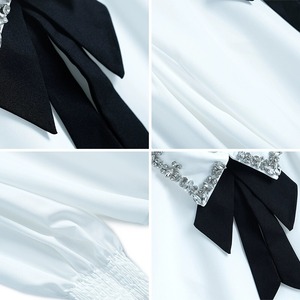 MIUCO 重工業ダイヤモンドがちりばめられた気質ラペルボウノット袖口シンプルなシャツ婦人服 リボン MIUCO11873063303