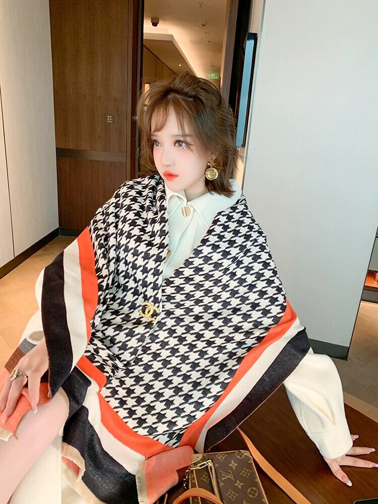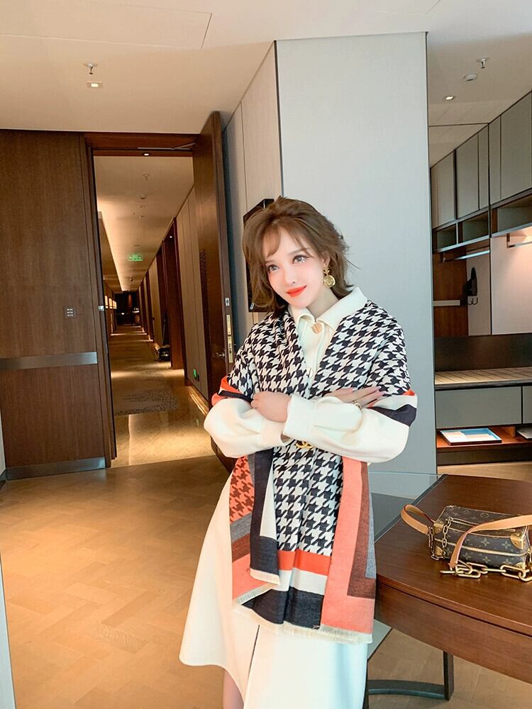 MIUCO クラウドテクスチャーレトロ千鳥格子柔軟なウォームコントラストカラースカーフ婦人服 MIUCO7143553583